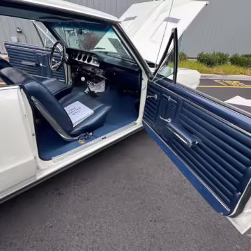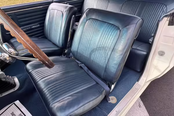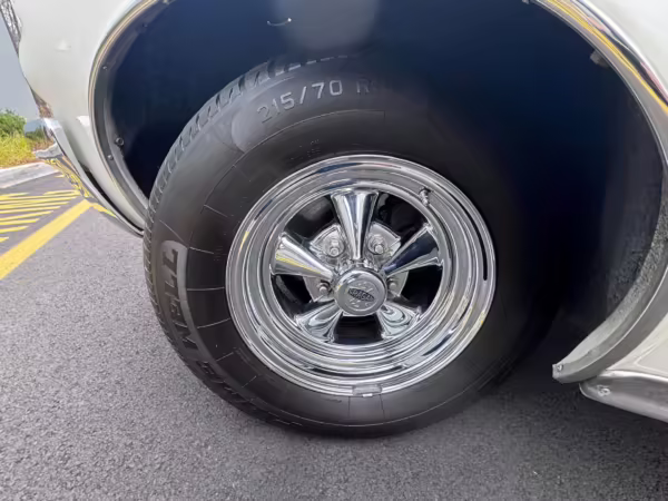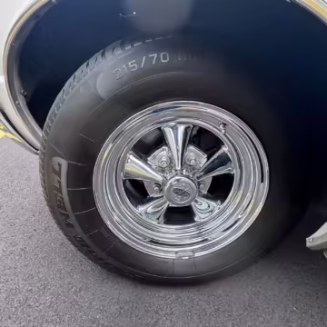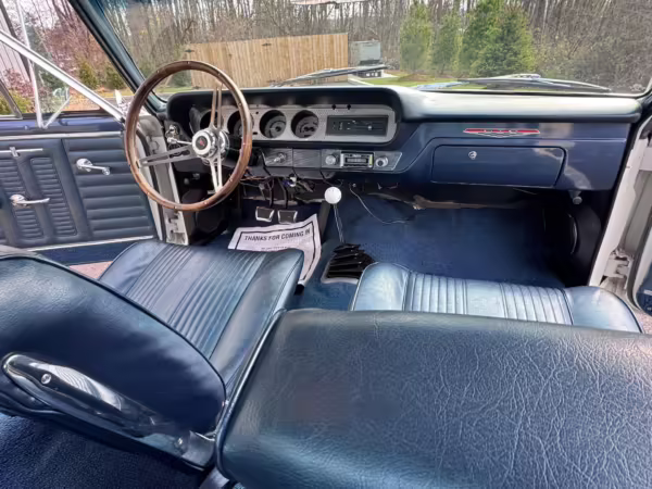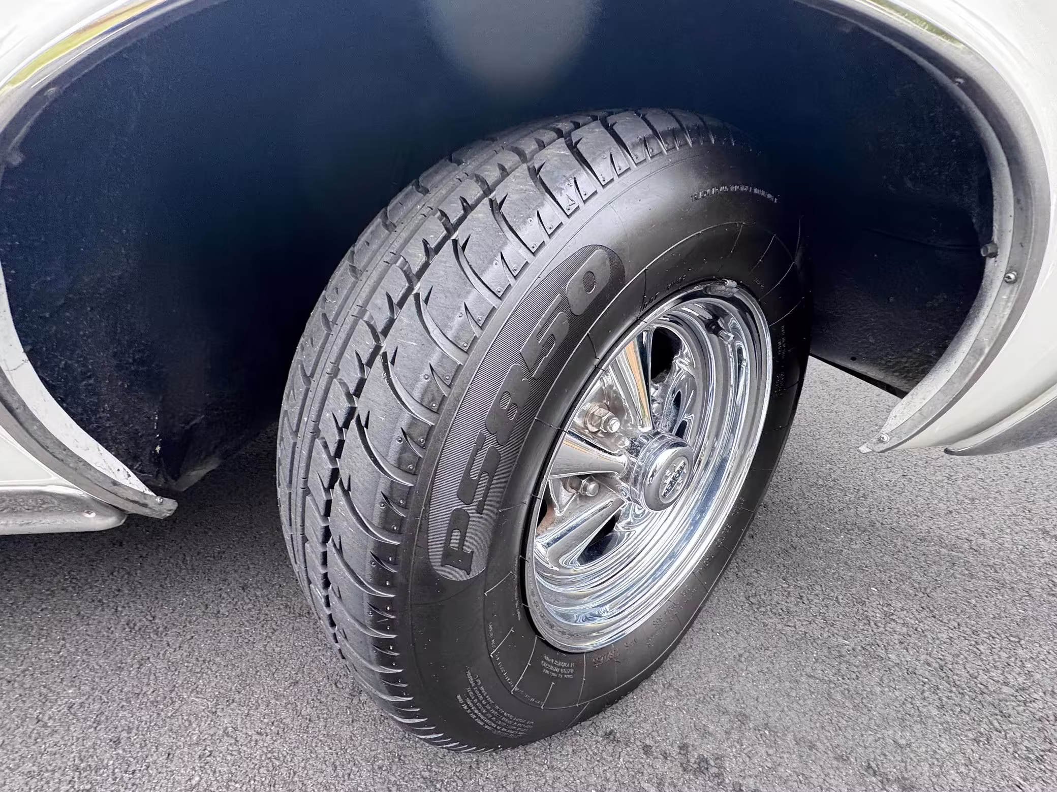 • A partial list of notable currently installed equipment reported by the selling dealer includes 14-inch Cragar wheels, power steering, vinyl upholstery, and a wood-rimmed steering wheel.