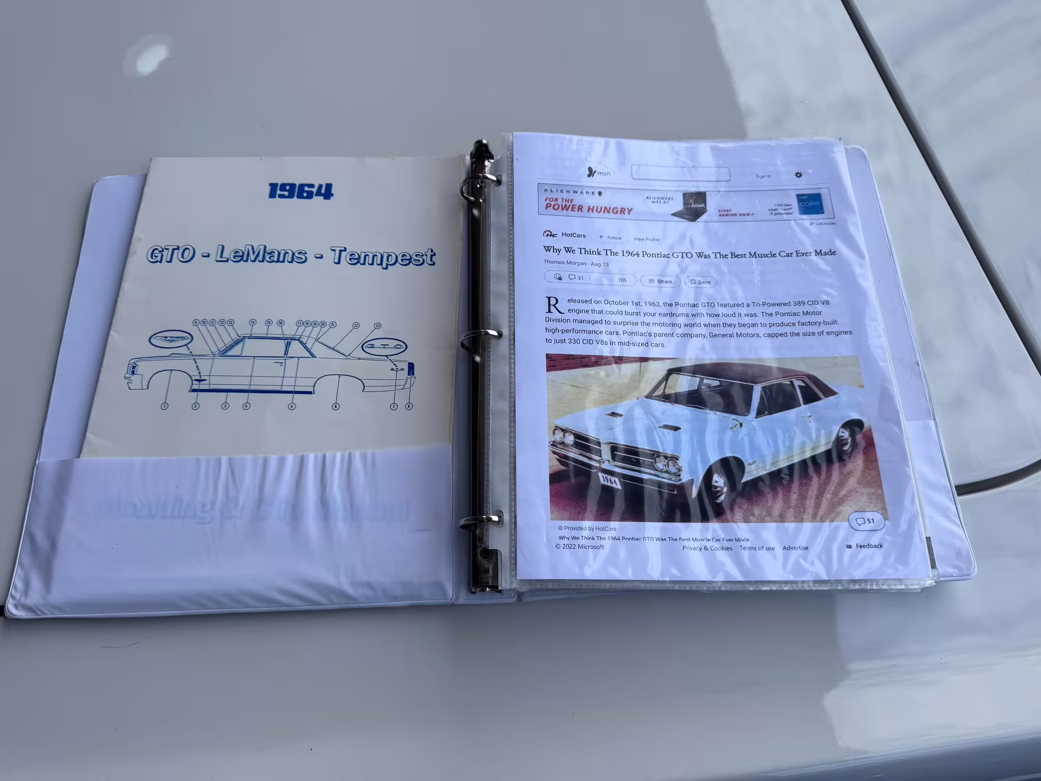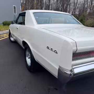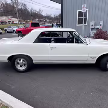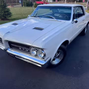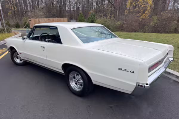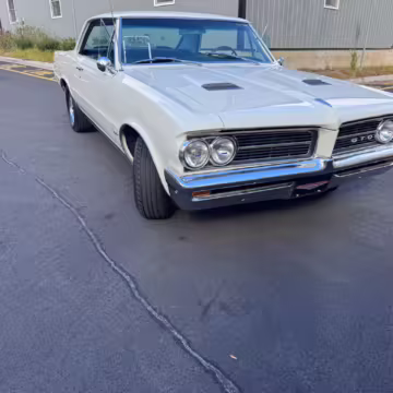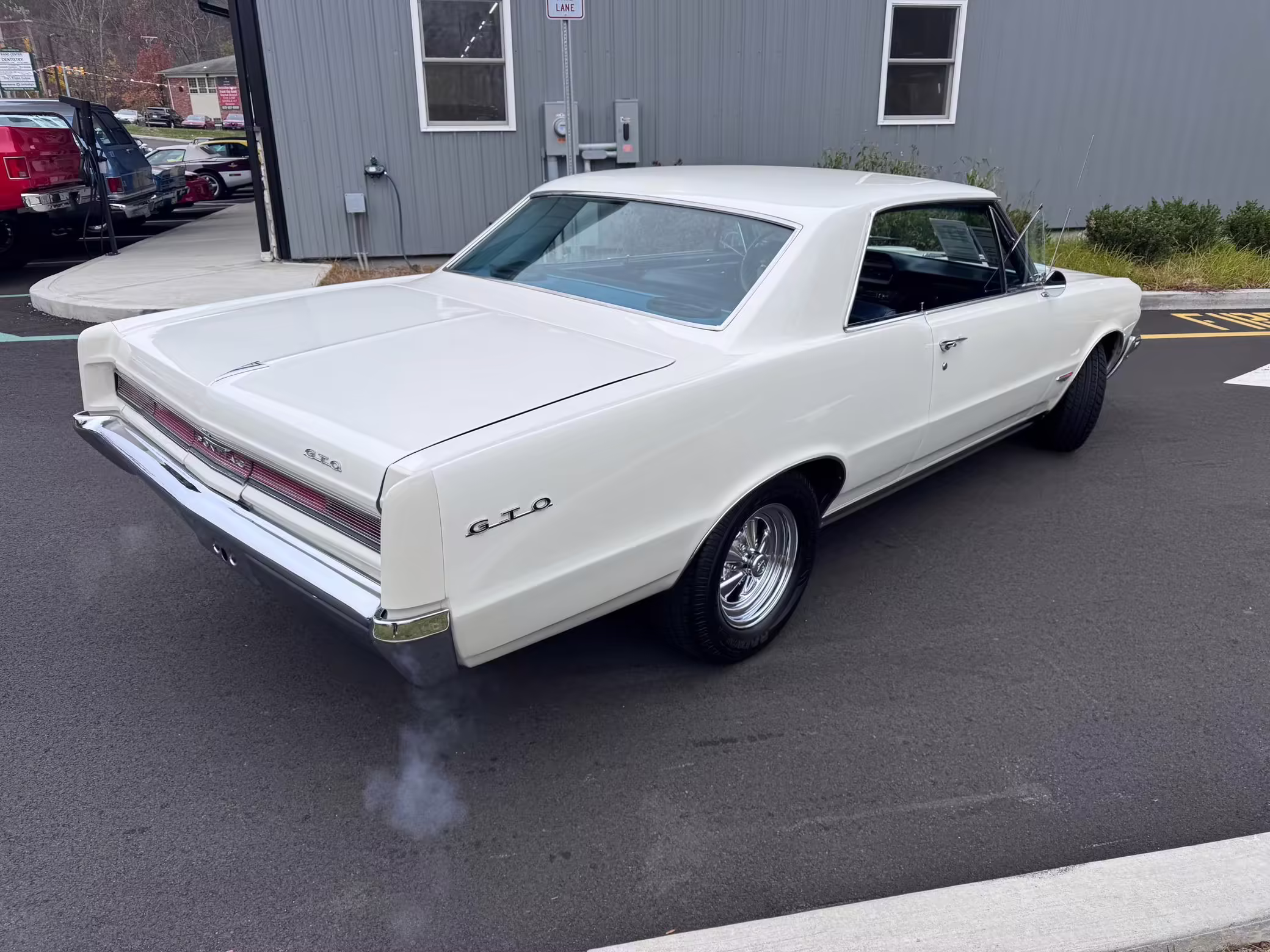 1964 Pontiac GTO Coupe, finished in white with a blue interior.