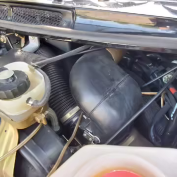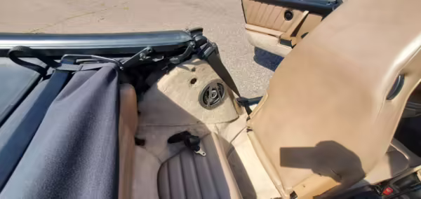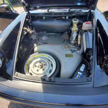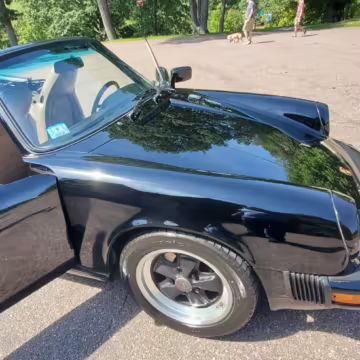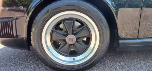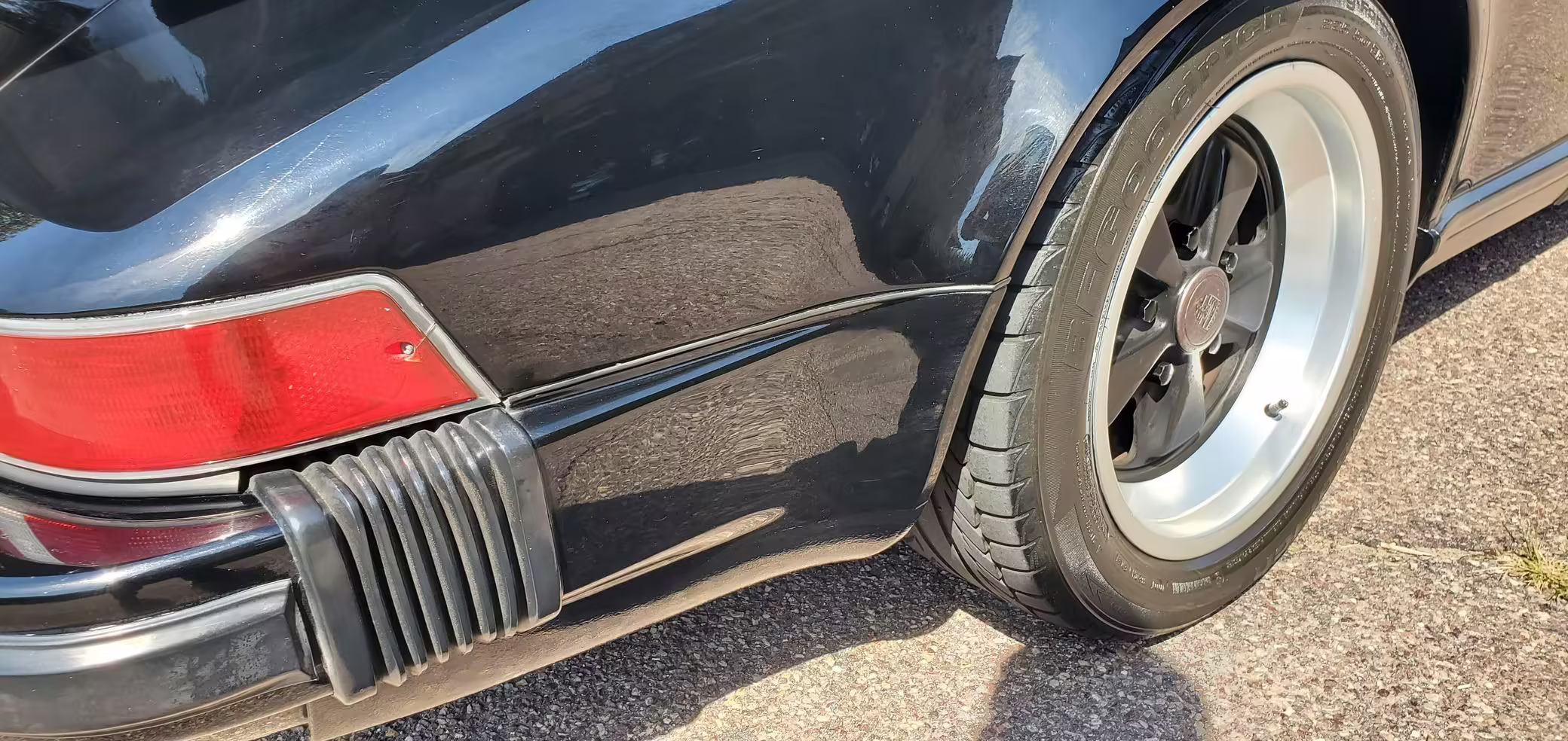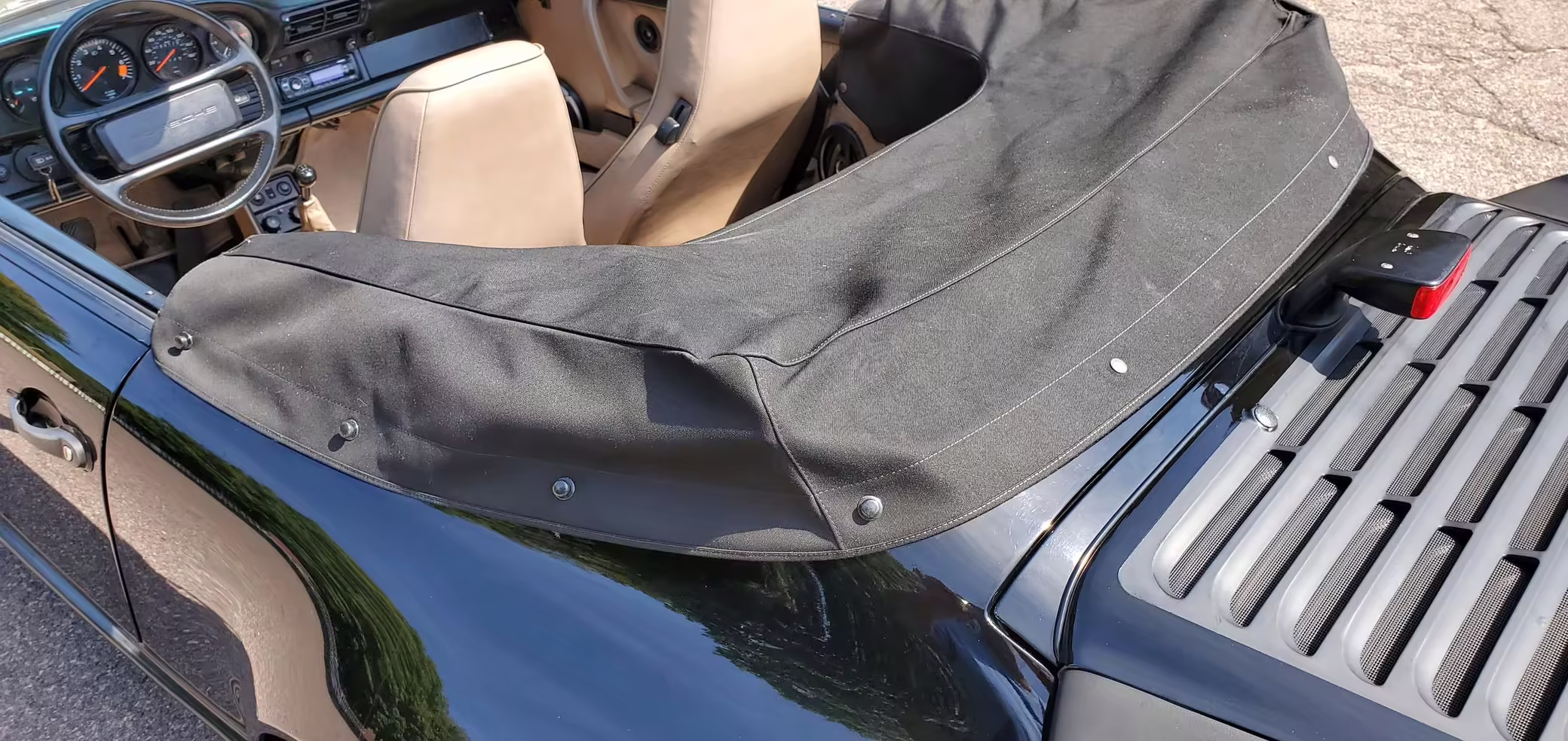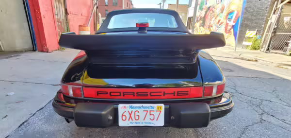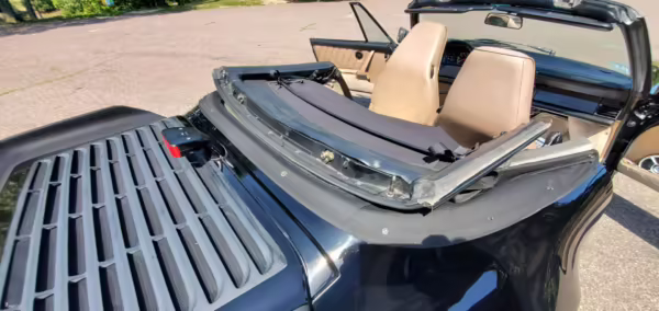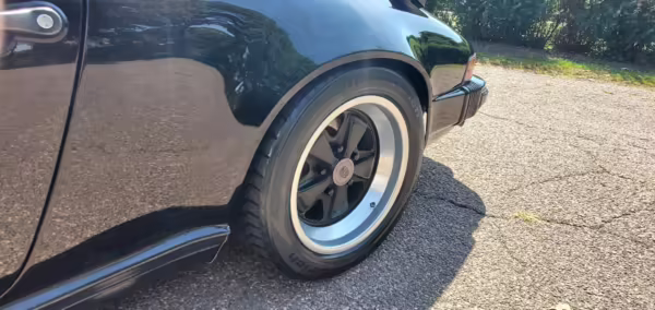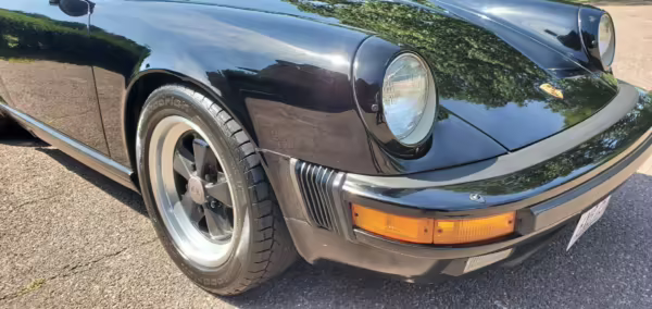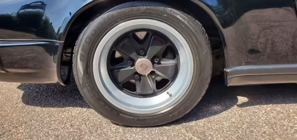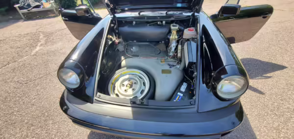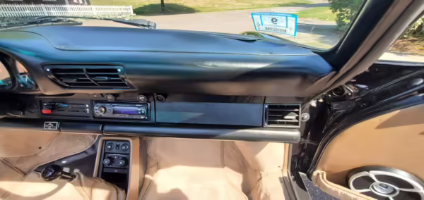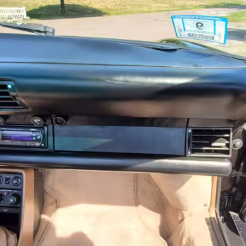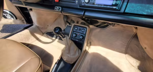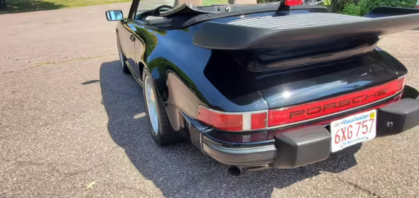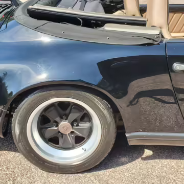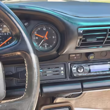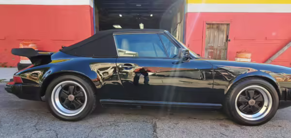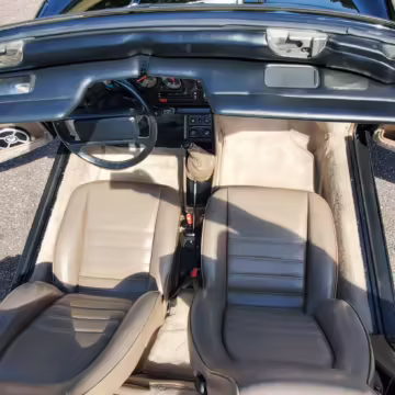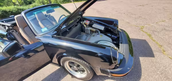Riding on 16-inch Fuchs wheels, this 911 is equipped with leather upholstery, air conditioning, and a power-operated cloth soft top. It’s largely unmodified with the exception of a Turbo-style rear spoiler, an aftermarket Sony CD player, and a set of aftermarket speakers.