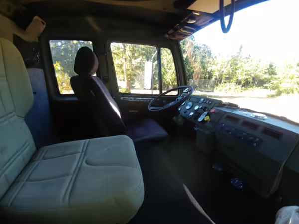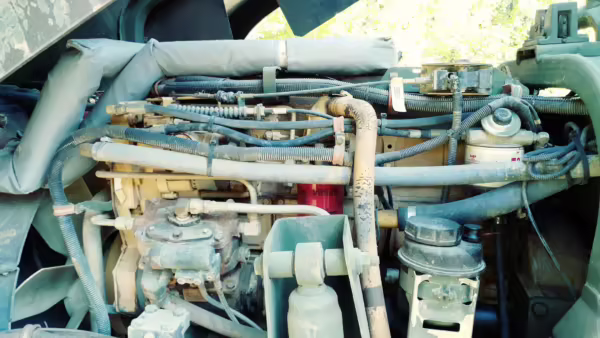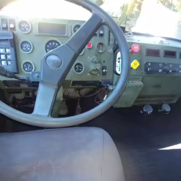 Power comes from a 6.6-liter Caterpillar 3116 straight-6 turbodiesel engine, rated at about 290 horsepower and 520 lb-ft of torque. Also found in construction and mining trucks, among other vehicles, the engine spins the six wheels via a 7-speed Allison automatic transmission.