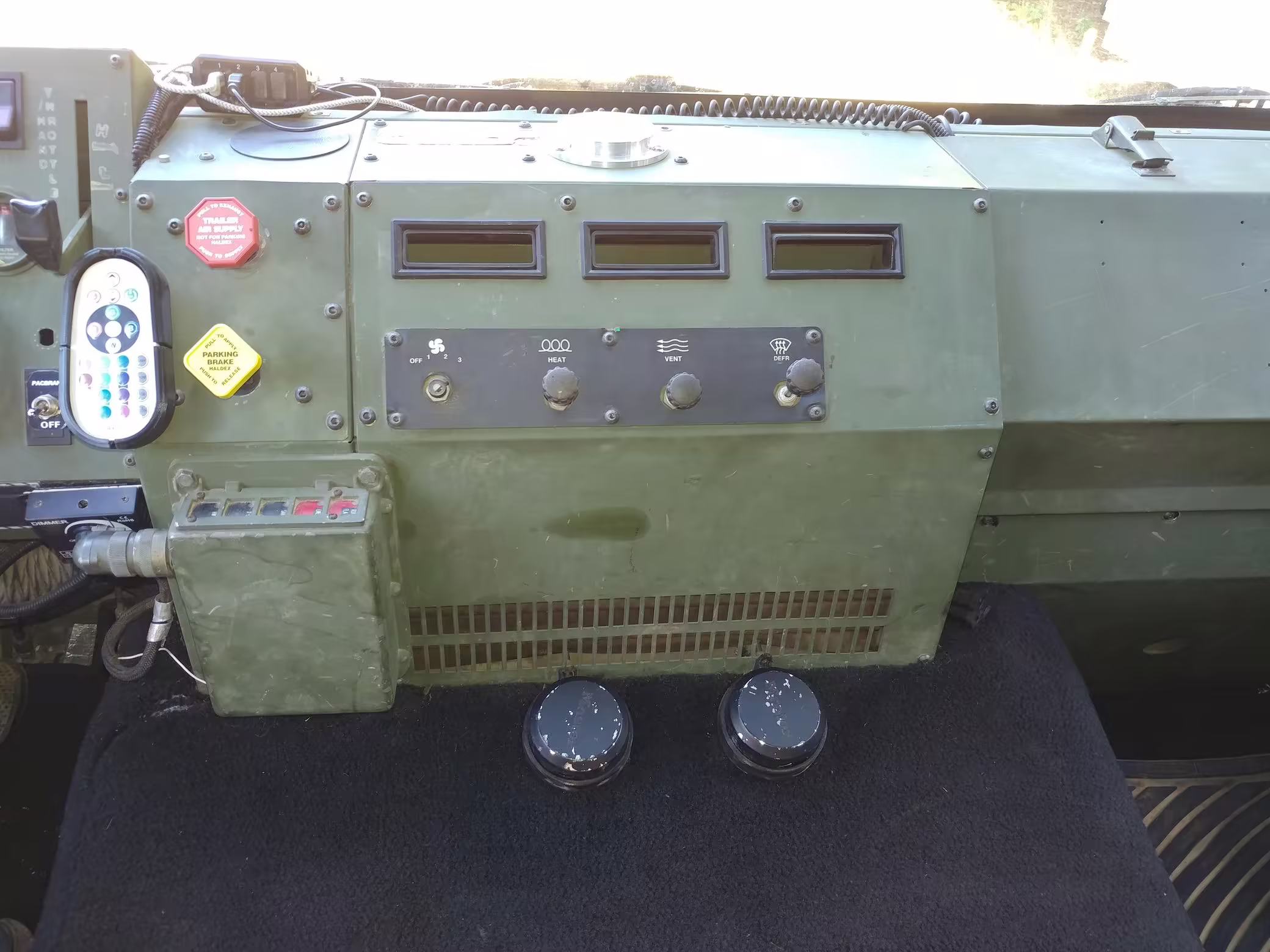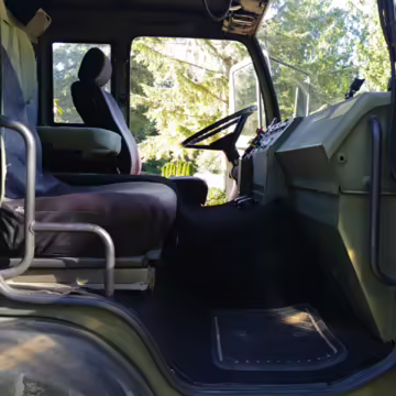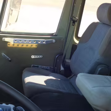 Factory equipment includes 20-inch wheels, a central tire inflation system (CTIS), a pneumatic braking system, a locking interaxle differential, cloth upholstery, and an adjustable steering column.
