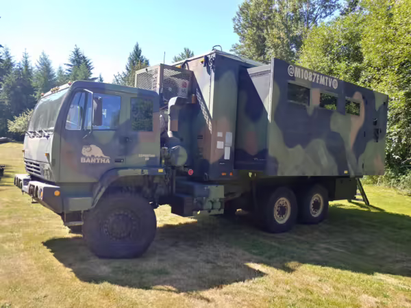 This truck was built for the United States Army and reportedly purchased by the former owner in June 2018. It’s street-legal in the state of Washington, where it’s registered as a motorhome.