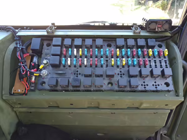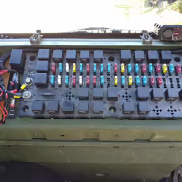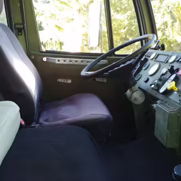 Stewart & Stevenson began providing the United States Army with its air-transportable Family of Medium Tactical Vehicles (FMTV) trucks in 1996, and the M1087 designation denoted a van with expandable side panels. These trucks trace their roots to the 12M18 built by Austria’s Steyr, though several modifications were made for American military use. Stewart & Stevenson quoted approach and departure angles of 40 and 22 degrees, respectively, and a 21,000-pound towing capacity.