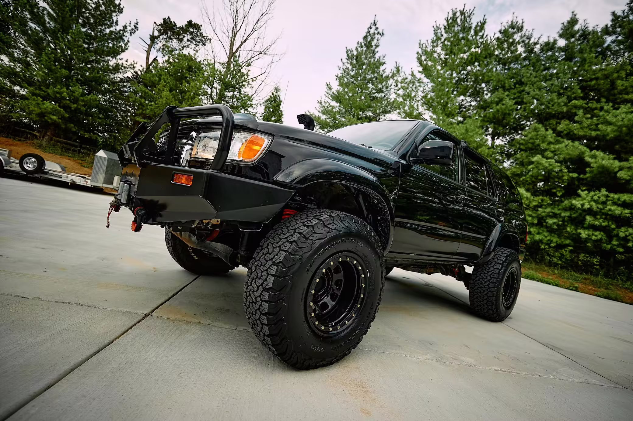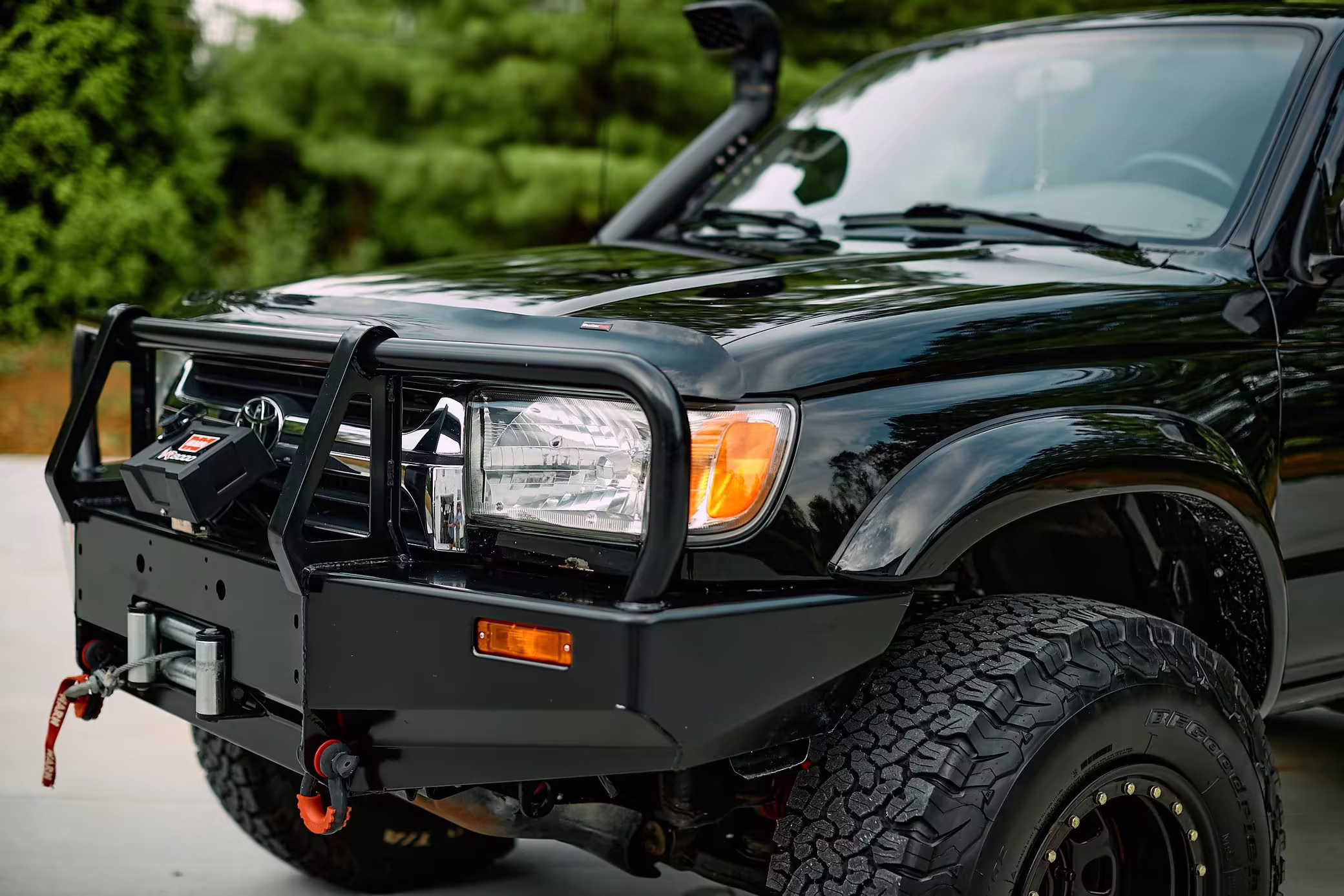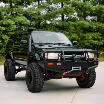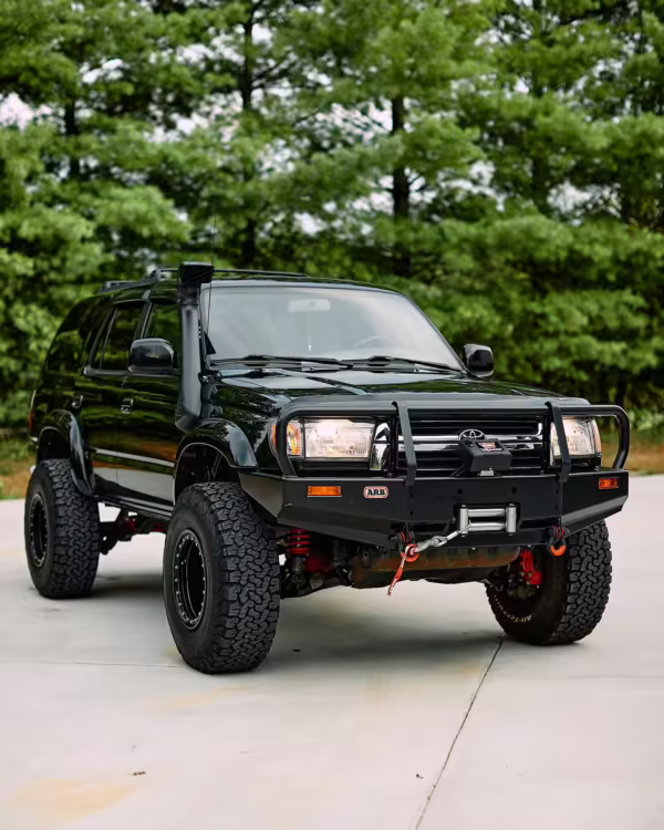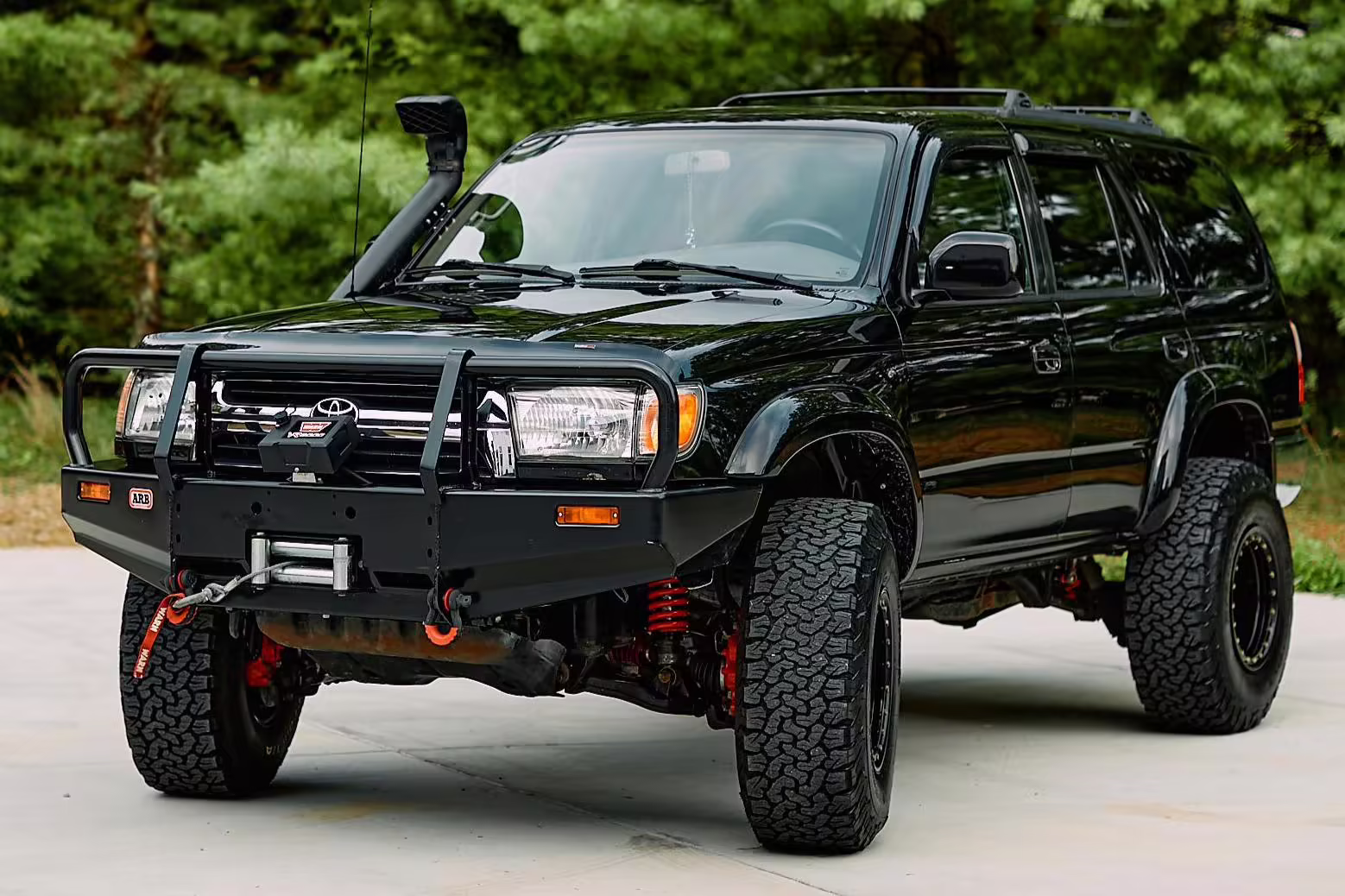 • Modifications to this 4Runner are extensive and highlights include a ToyTec lift kit with 3-inch 650 lbs Red front springs and 3.75-inch SuperFlex rear springs, an ARB front bumper, ARB Safari snorkel, ARB differential breather, Warn VR8000 winch, Tundra-sized front PowerStop drilled and slotted disc brake rotors, and many poly bushings.
