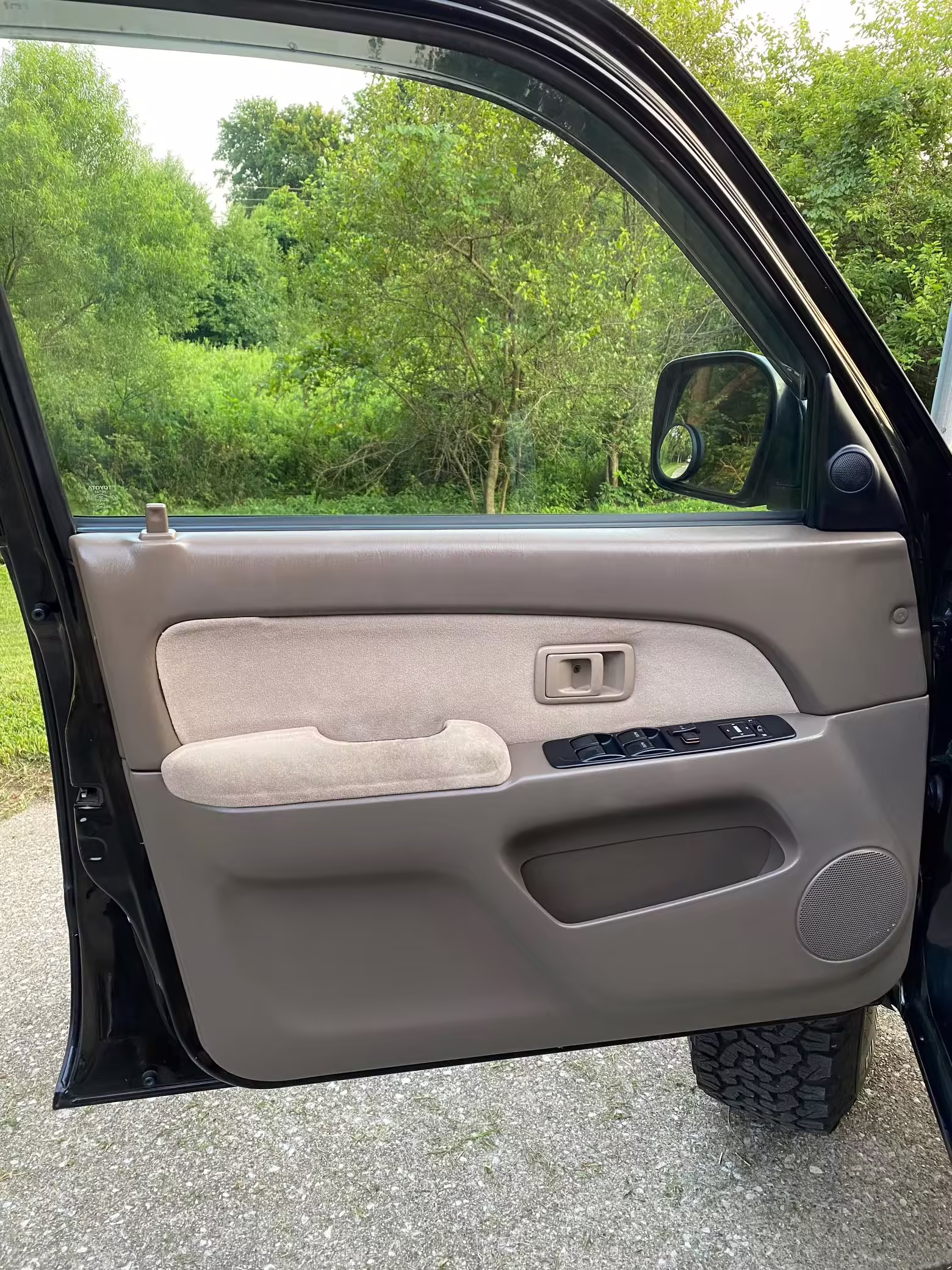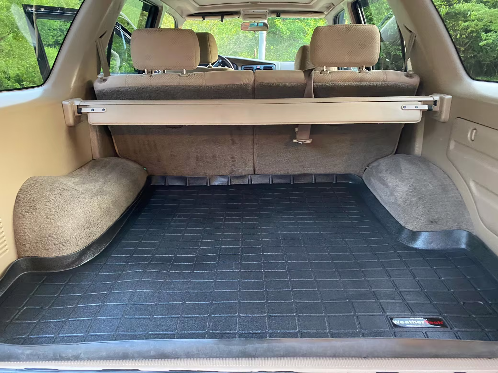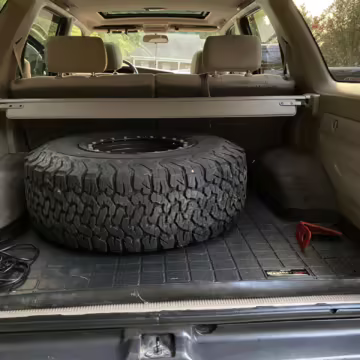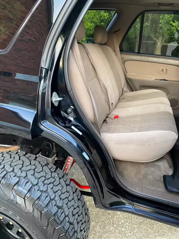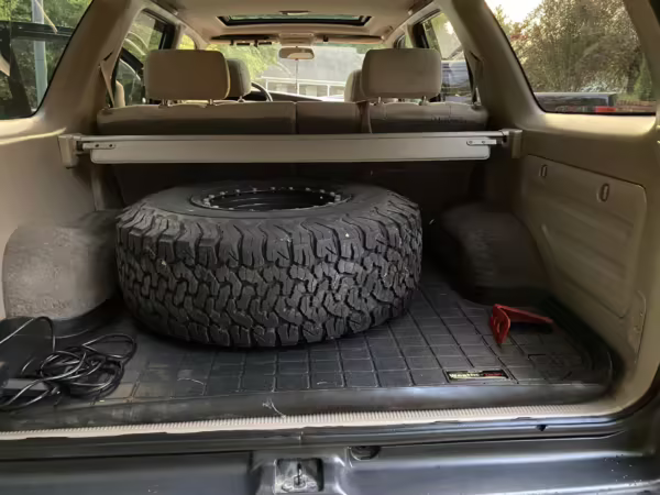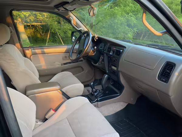 • Factory equipment includes a center locking differential, sunroof, roof rack, chrome rear bumper, rear wind deflector, powered windows and locks, powered roll-down rear window, powered side-view mirrors, rear heater, 12V outlets, air conditioning, and cruise control.