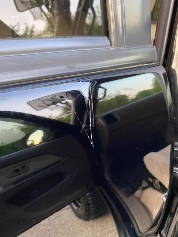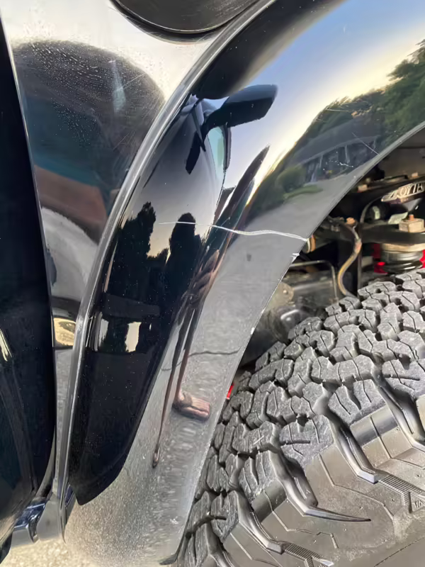• Scratches above the driver door, passenger-side rear door, and on passenger side fender flare