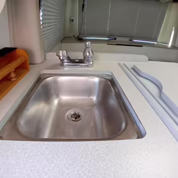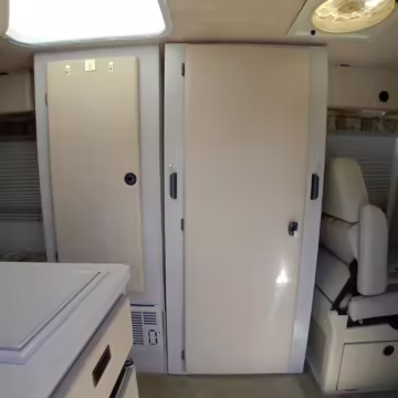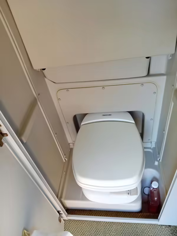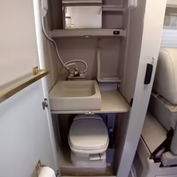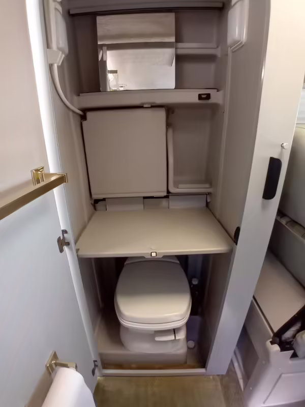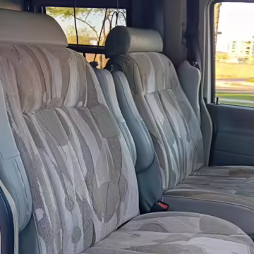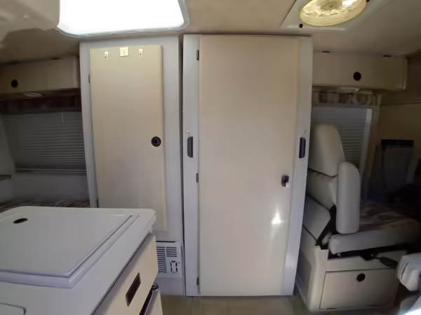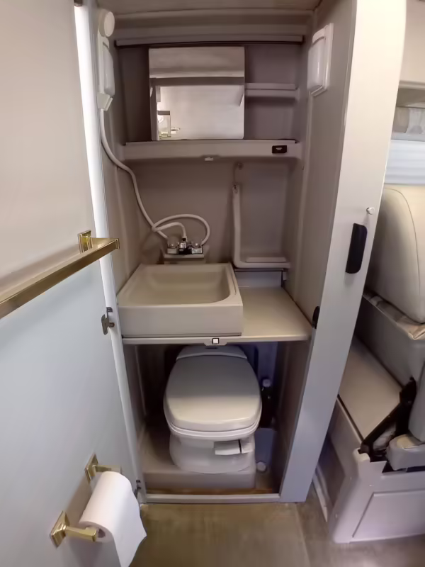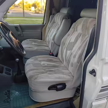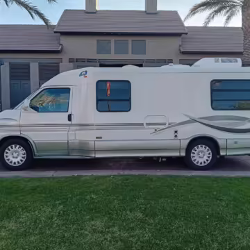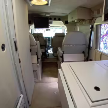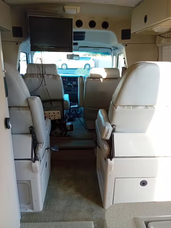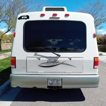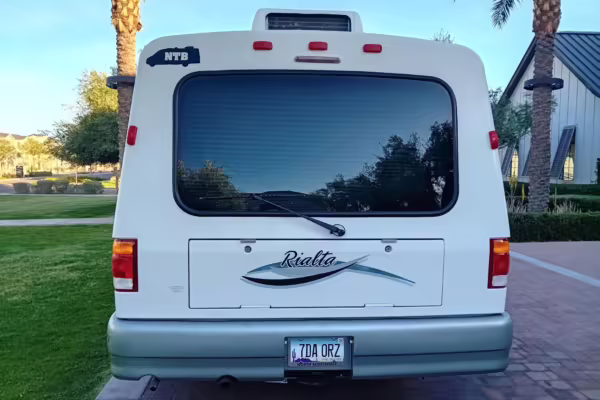 This van was converted into a Rialta camper by Winnebago. The conversion includes a custom body, rear air suspension, middle-row captain’s chairs, dual sofas, a shower with an extendable wall, a kitchen with an extendable countertop, a refrigerator, and more as listed below.