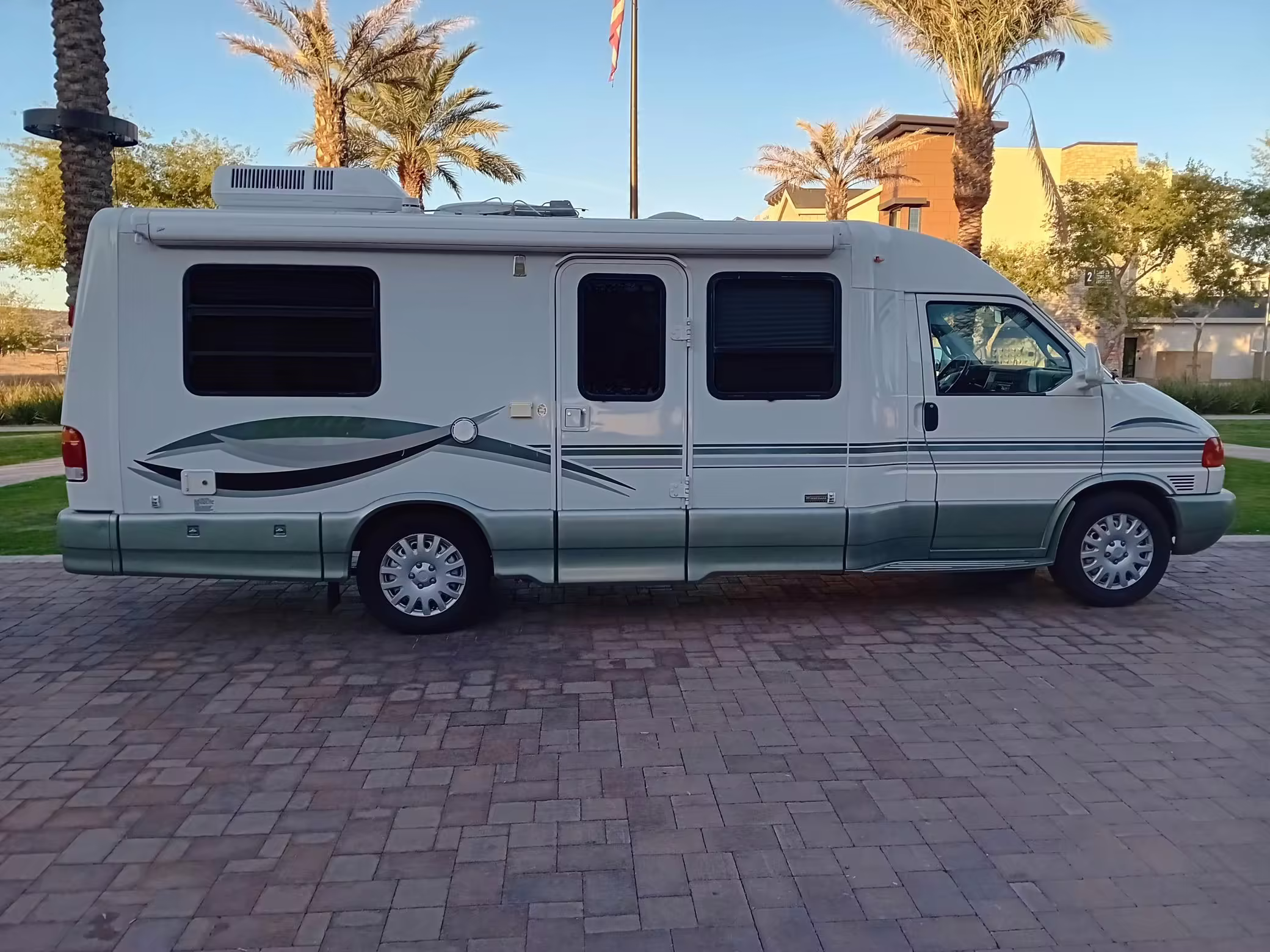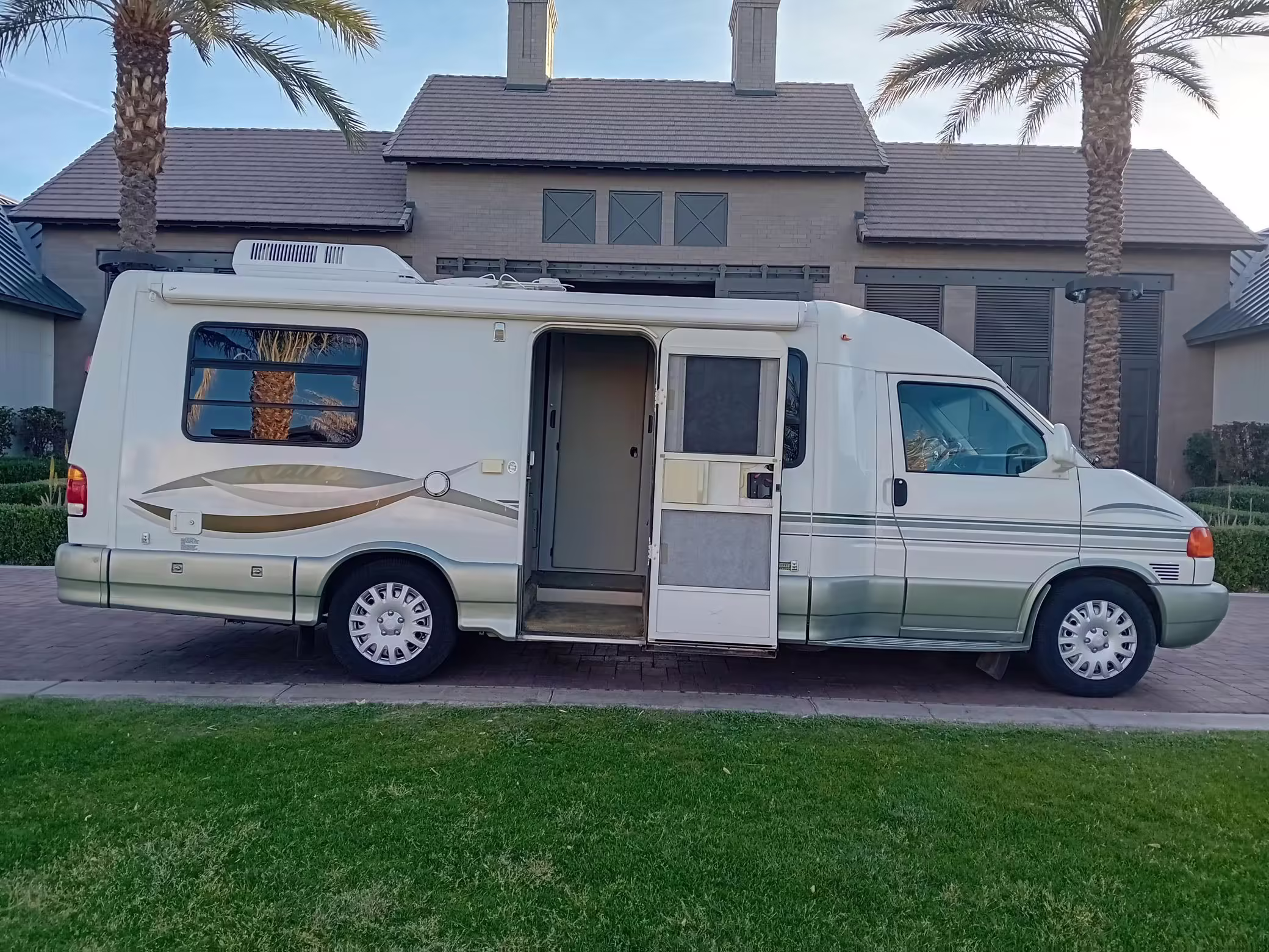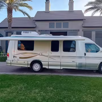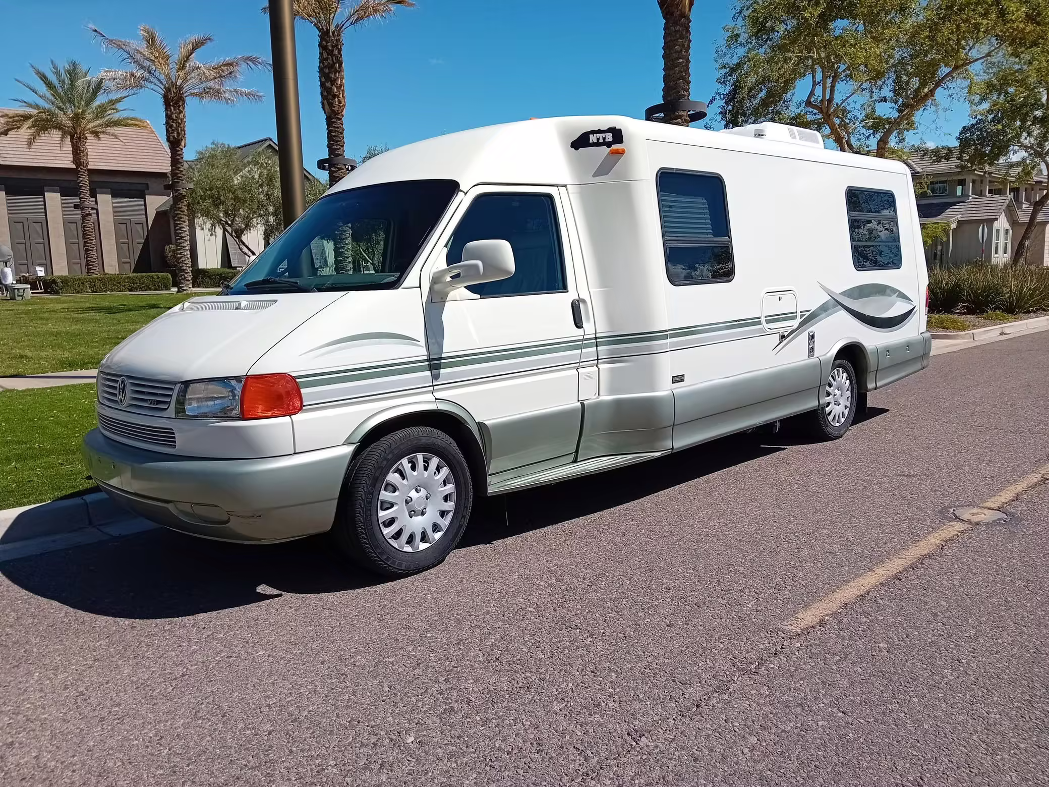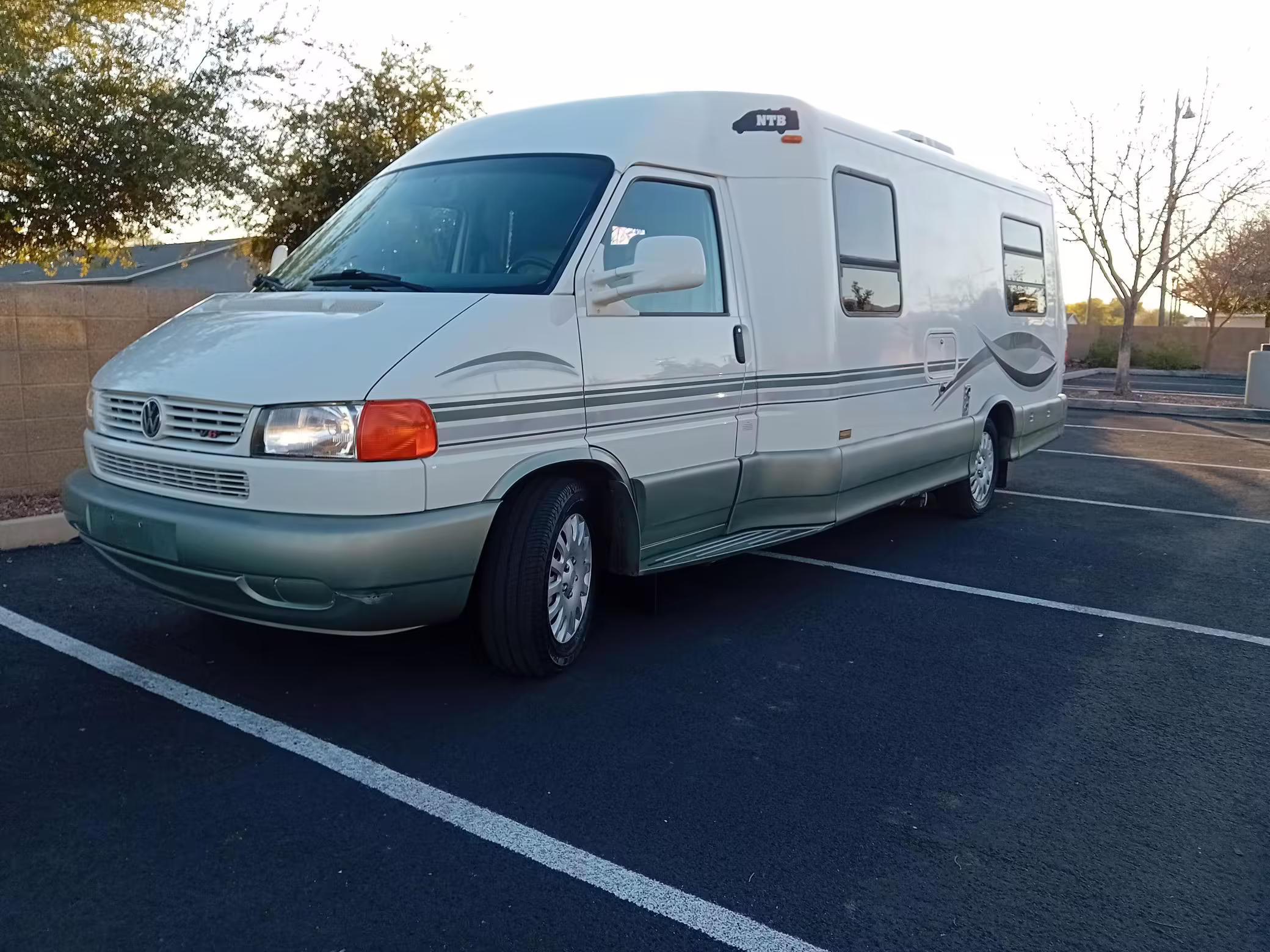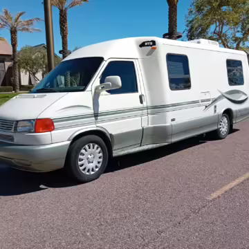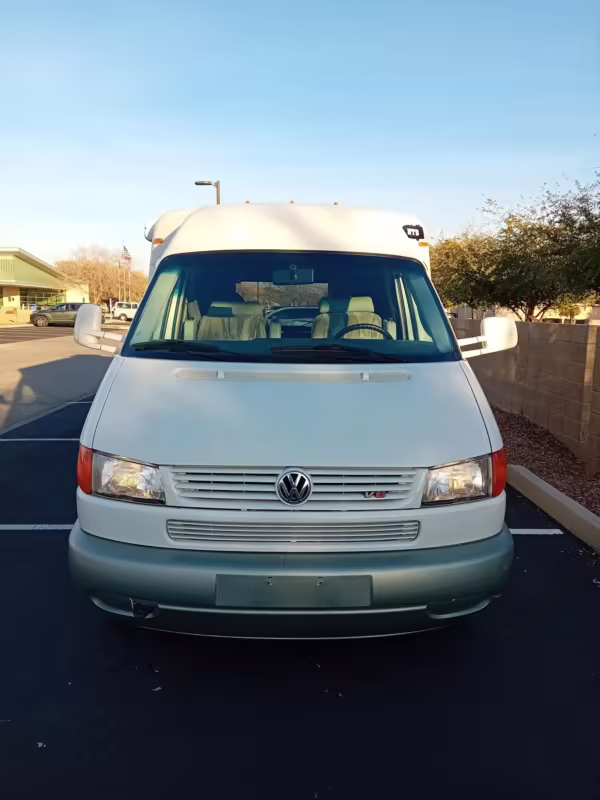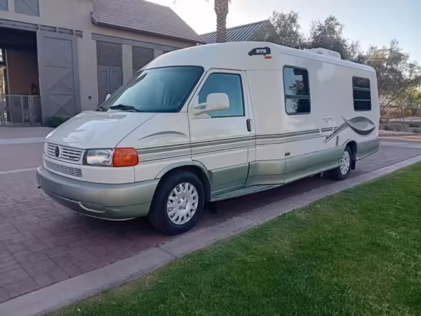 2002 Volkswagen EuroVan Winnebago Rialta, finished in white with a gray interior.