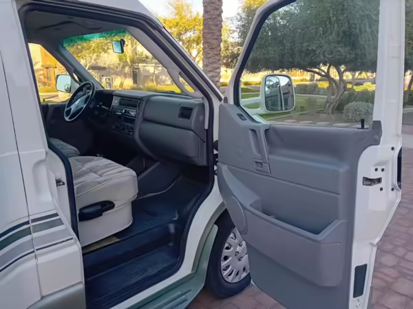 Based on the T4-generation Transporter, the EuroVan is on the same branch of the Volkswagen family tree as the split- and bay-window Buses and the Vanagon. The T4 stood out as Volkswagen’s first front-wheel drive van when it launched globally in 1990, and outfitters such as Winnebago took advantage of the spacious interior to turn the EuroVan into a camper that a family could comfortably sleep in.