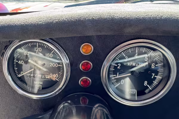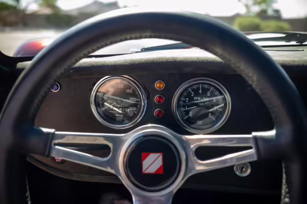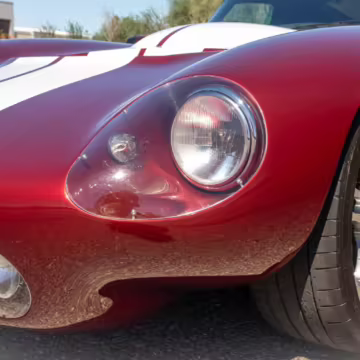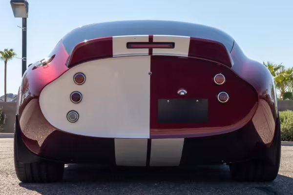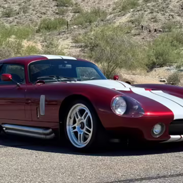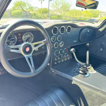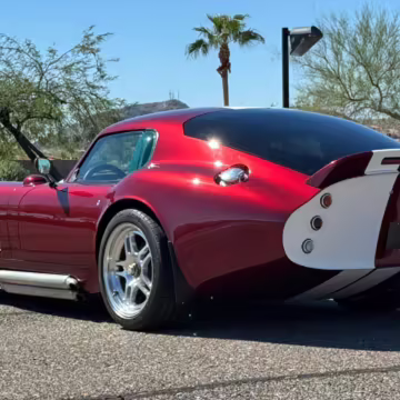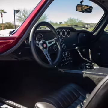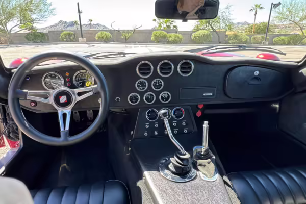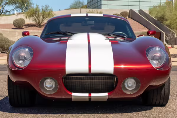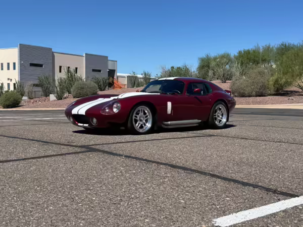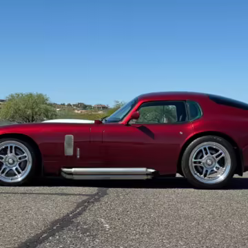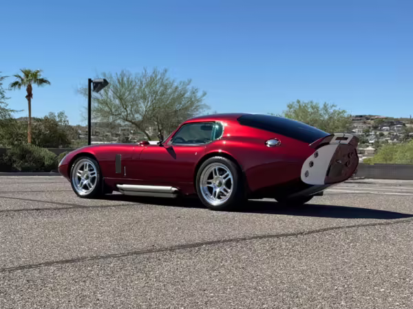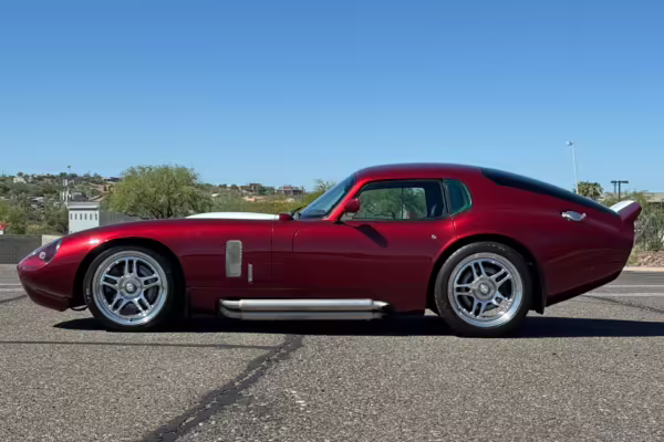 The Superformance Daytona Coupe is a thrilling sports car, boasting an analog driving character, beautiful classic styling, and a big and burly V8 – a revived classic in all the right ways. This particular Daytona Coupe is fitted with a 427-cubic-inch Windsor V8 paired with a 6-speed manual transmission. It also boasts a few desirable BRE upgrades, including a rear window, headlights and driving lights, and a set of 18-inch wheels. Plus, it’s finished in gorgeous Sunset Red, and it shows just 2,800 miles from new, further adding to the appeal.