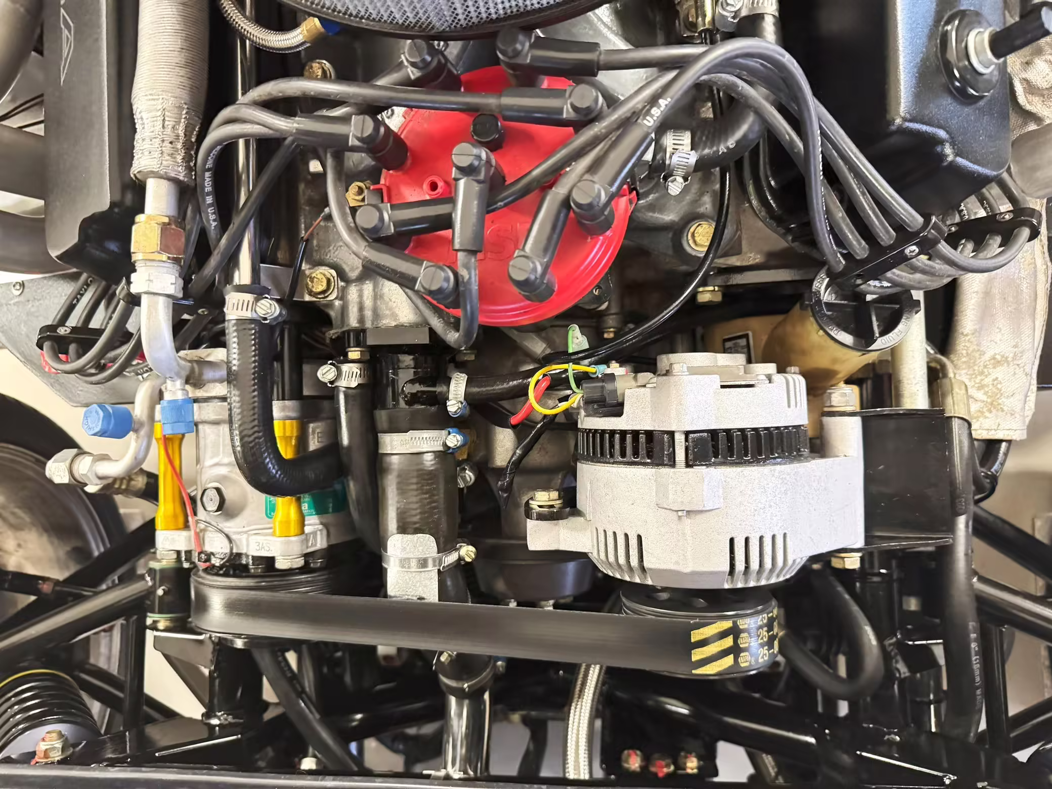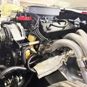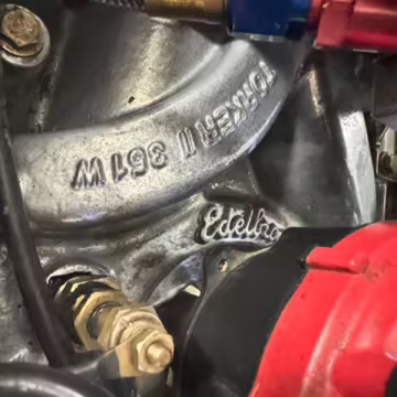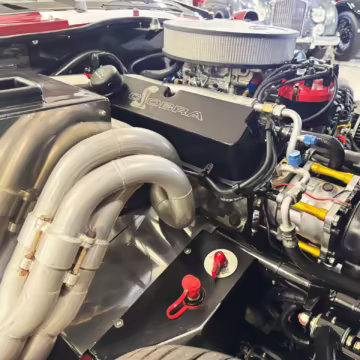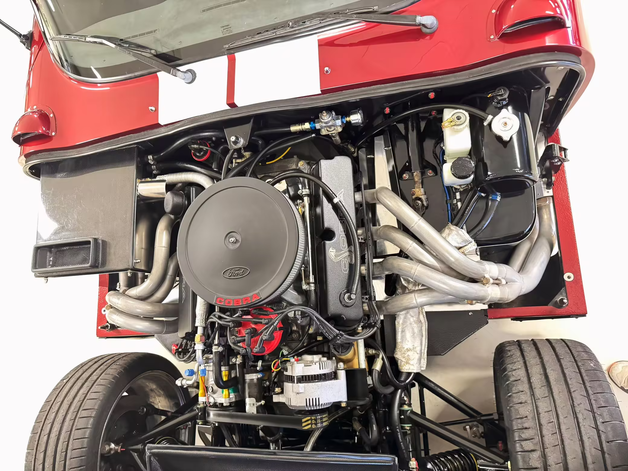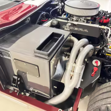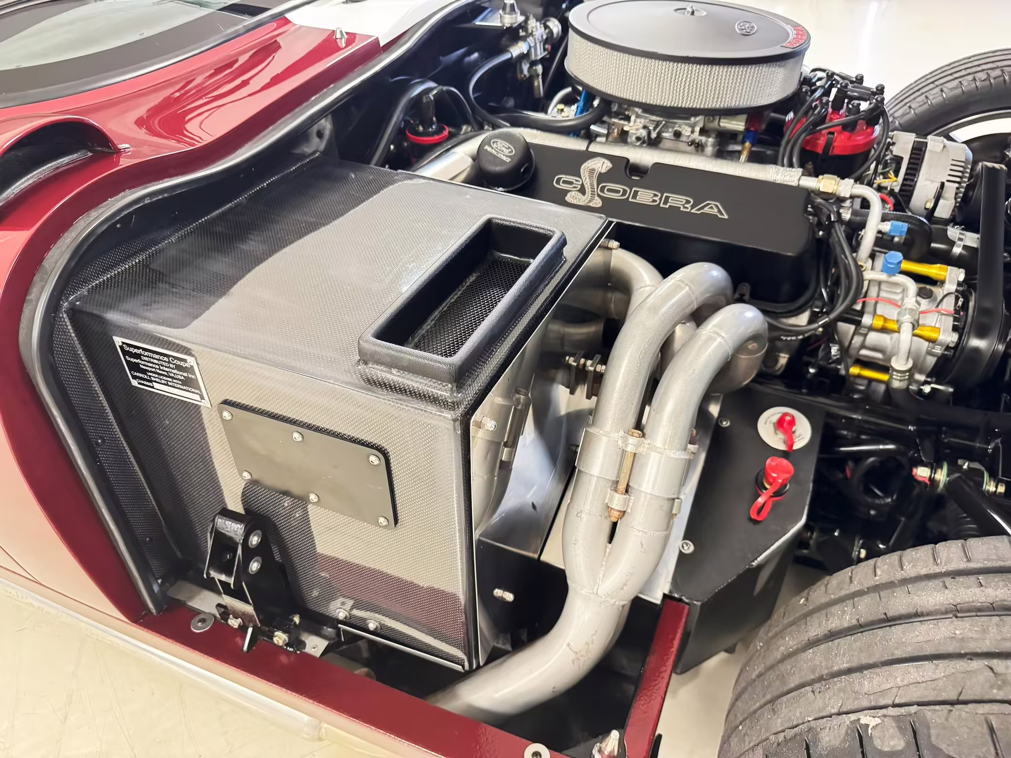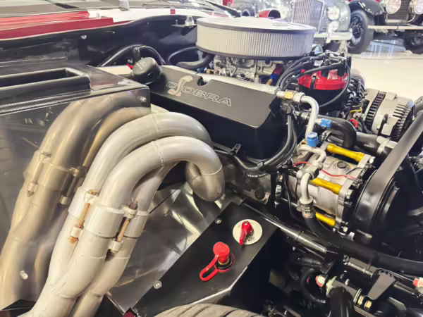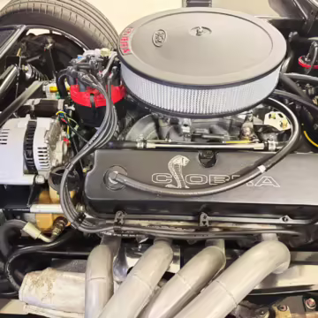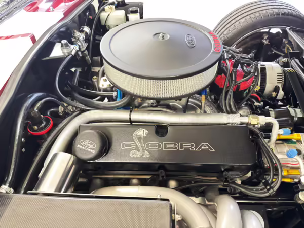 • Power comes from a Windsor 427-cubic-inch V8. Output is sent to the rear wheels via a 6-speed manual transmission.