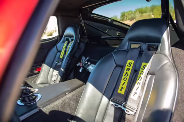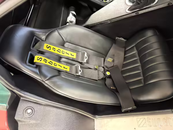 • A partial list of notable currently installed equipment reported by the selling dealer includes 18-inch wheels, Brock Racing Enterprises headlights and driving lights, Brock Racing Enterprises door mirrors, a Brock Racing Enterprises rear window, leather upholstery, Sabelt harnesses, and air conditioning.