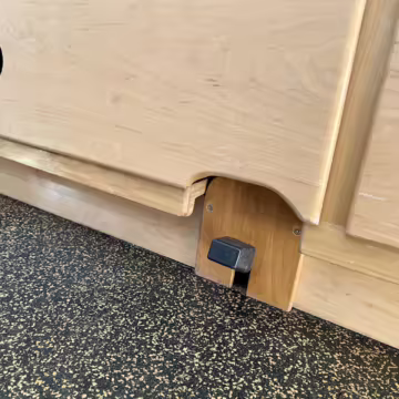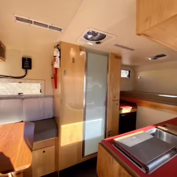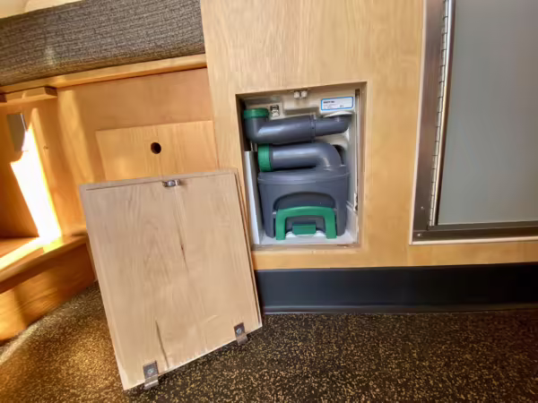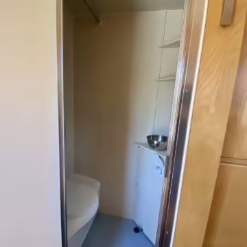 Wet room with Thetford cassette toilet and handheld shower (operated by foot pump)