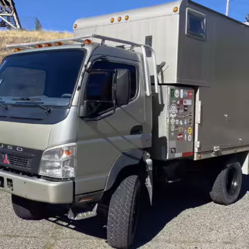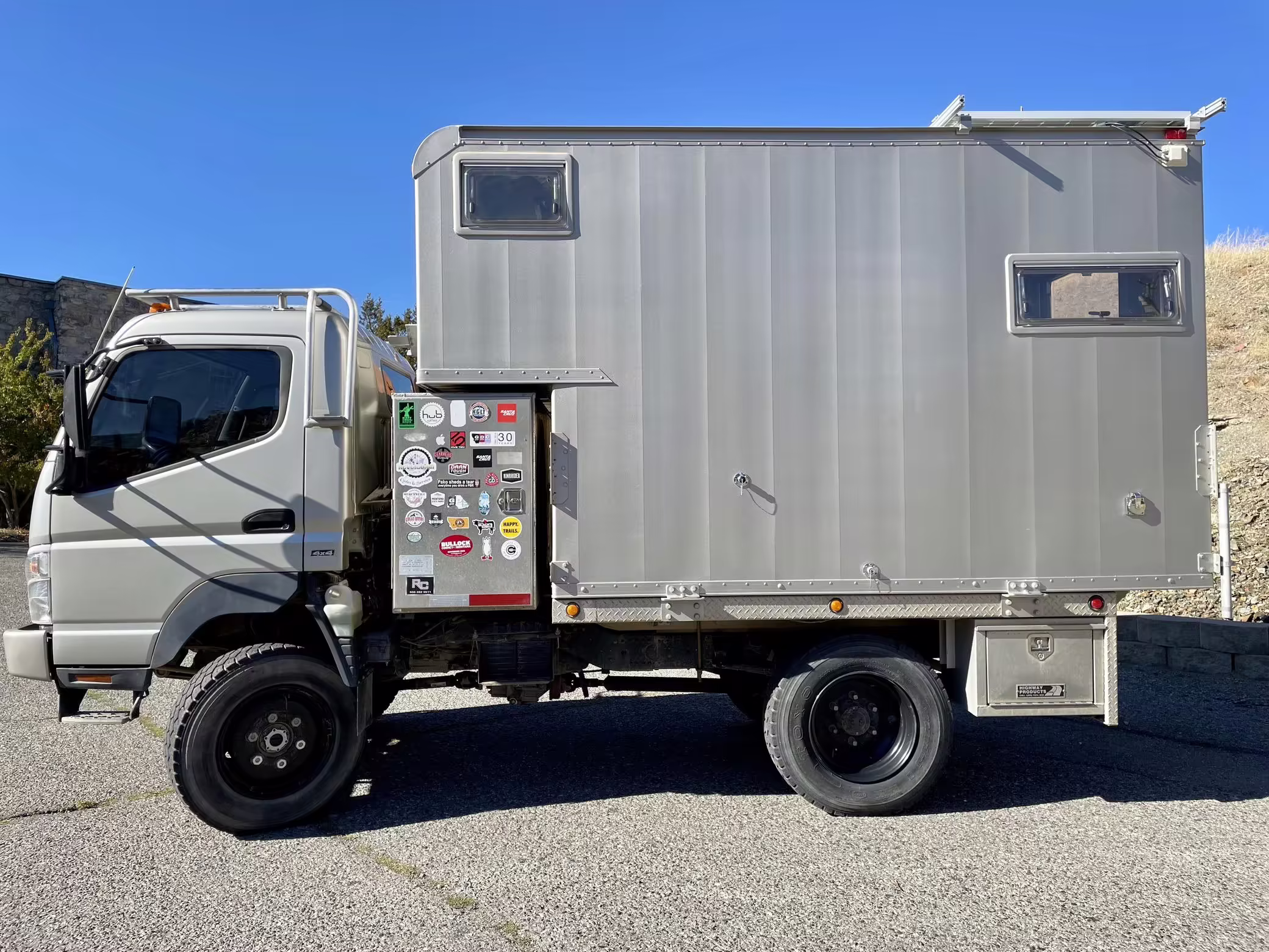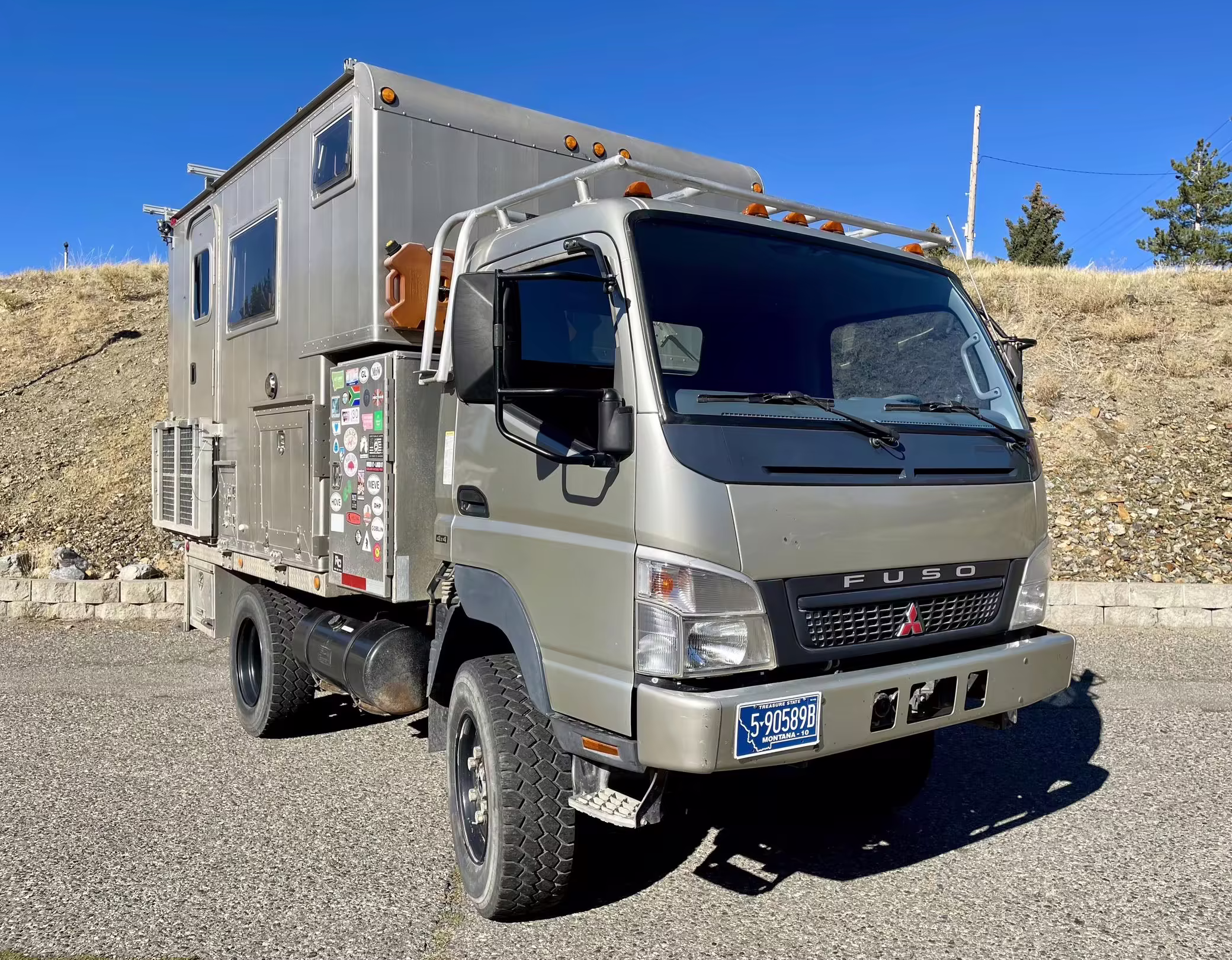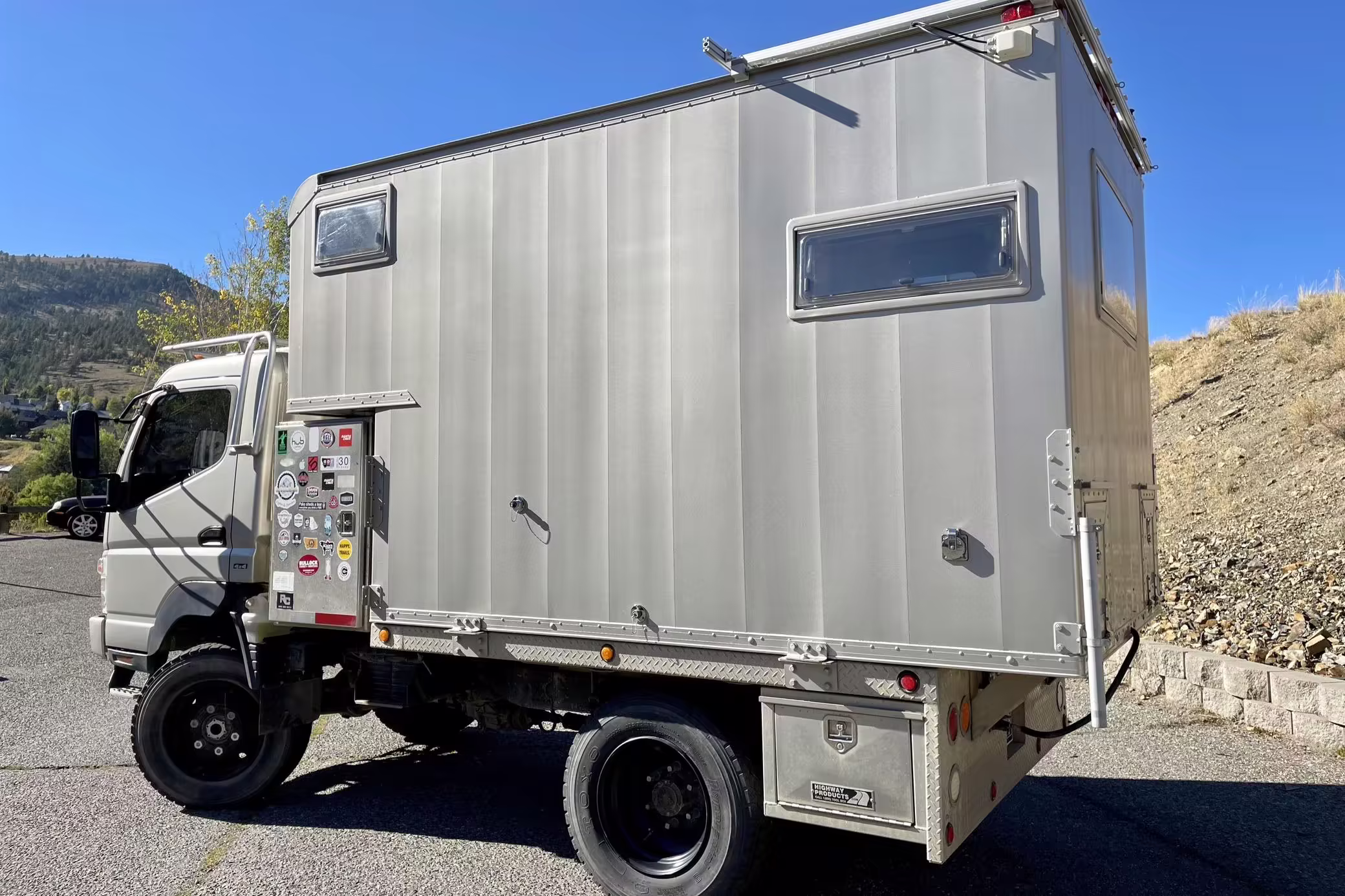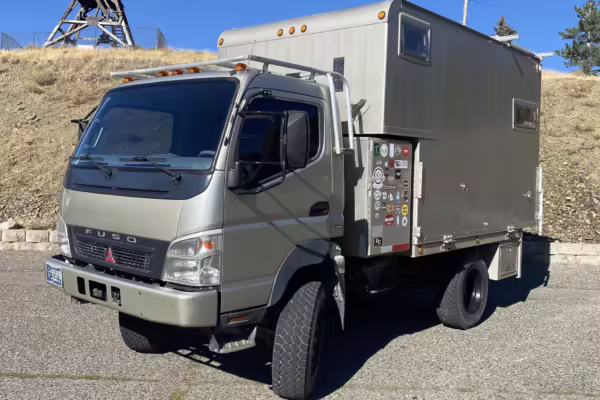 This thing is amazing! These turbodiesel-powered Mitsubishi Fuso Canter trucks are incredibly robust, as they were primarily designed for industrial use. They also make great off-roaders, and they’re frequently used as overlanders in other parts of the world. This one has been given a full off-grid camper conversion – and one of the really neat features is a removable living unit, so you can post base camp while continuing to explore further into the wilderness! Other benefits include custom cabinetry, two beds that sleep three people, a toilet and shower, solar power, and more. This Fuso also comes equipped with 4-wheel drive, a 5-speed manual transmission, and manually-locking front hubs.