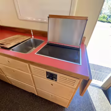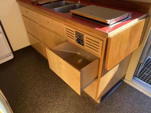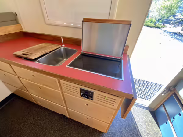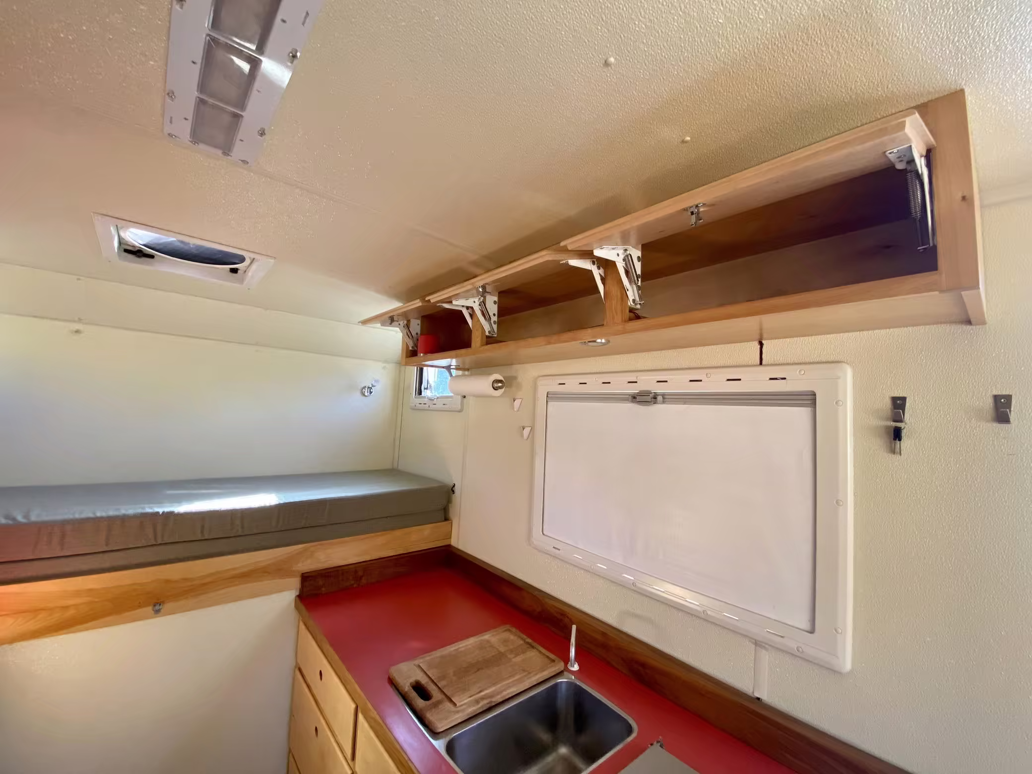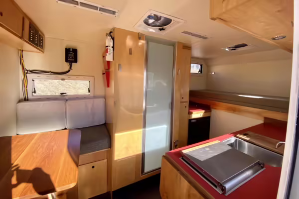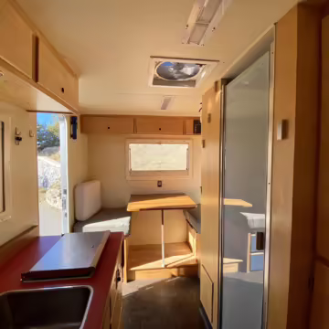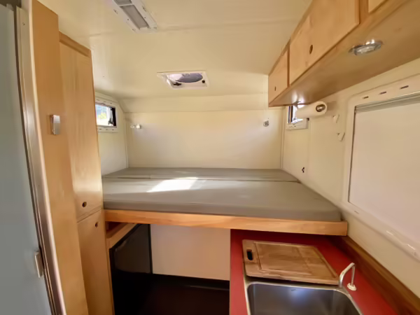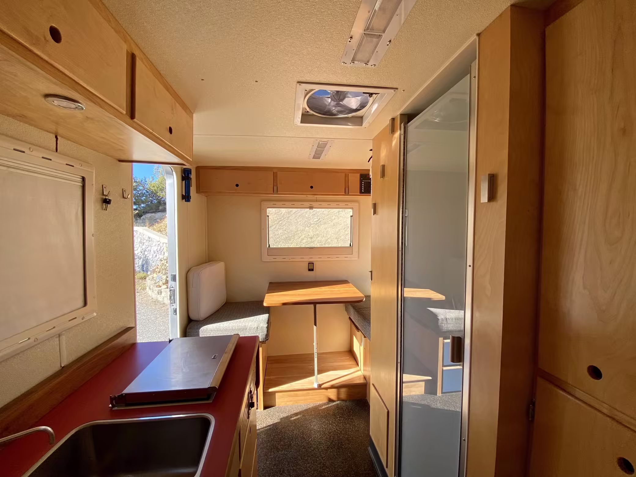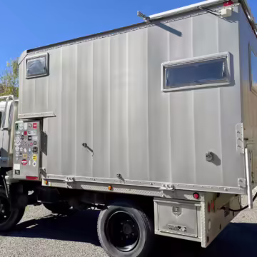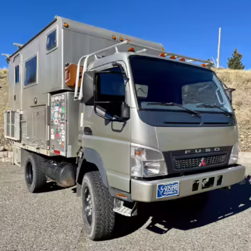 This thing is amazing! These turbodiesel-powered Mitsubishi Fuso Canter trucks are incredibly robust, as they were primarily designed for industrial use. They also make great off-roaders, and they’re frequently used as overlanders in other parts of the world. This one has been given a full off-grid camper conversion – and one of the really neat features is a removable living unit, so you can post base camp while continuing to explore further into the wilderness! Other benefits include custom cabinetry, two beds that sleep three people, a toilet and shower, solar power, and more. This Fuso also comes equipped with 4-wheel drive, a 5-speed manual transmission, and manually-locking front hubs.