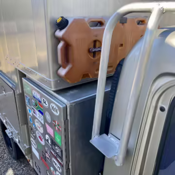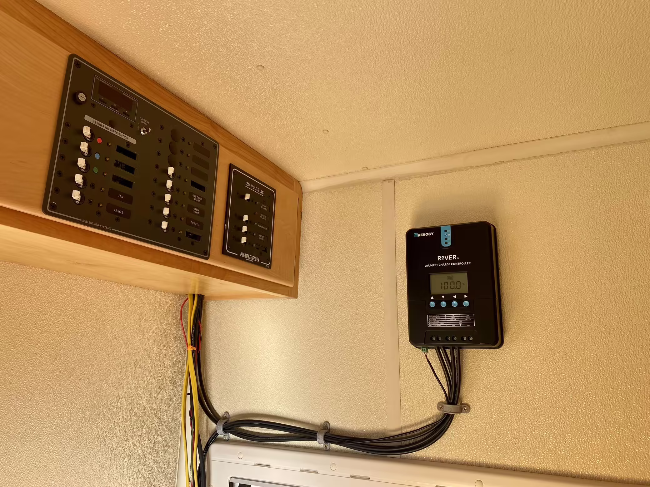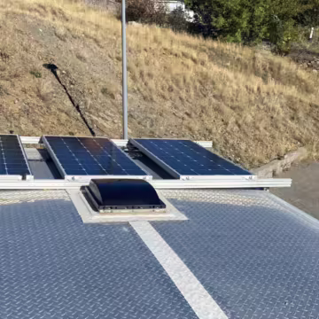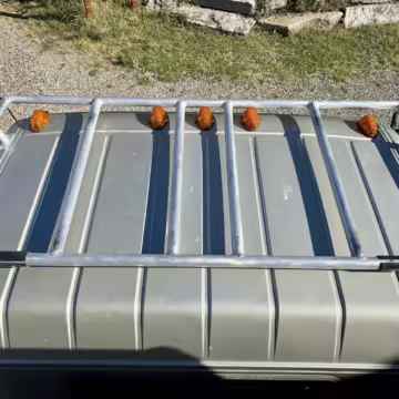 (3) 100W Renogy solar panels mounted on custom roof rack