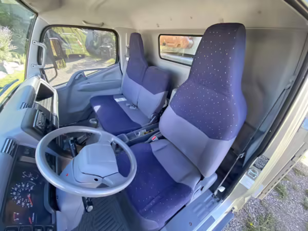 2007 Mitsubishi Fuso Canter 4×4, finished in Arcadia Silver with a blue interior.