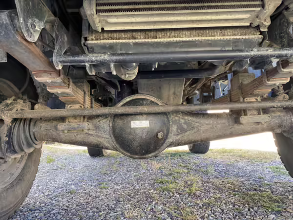 Factory equipment includes front and rear solid axles, a limited-slip rear differential, a leaf spring suspension system, anti-lock brakes, cloth upholstery, power front windows and locks, air conditioning, and vinyl cab flooring.