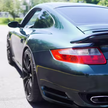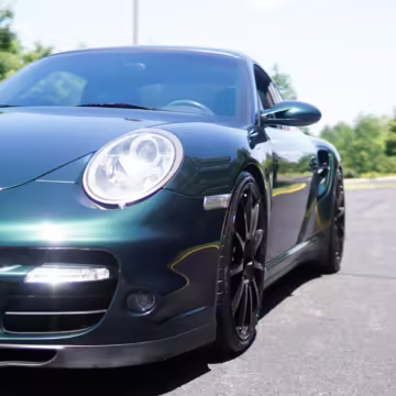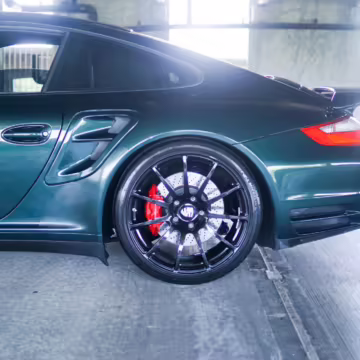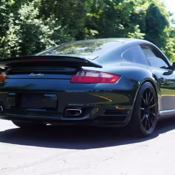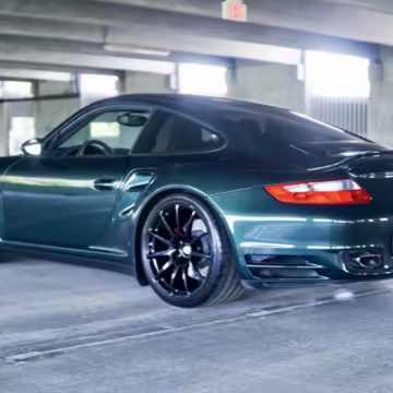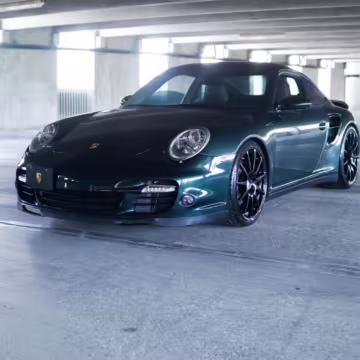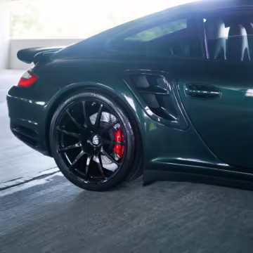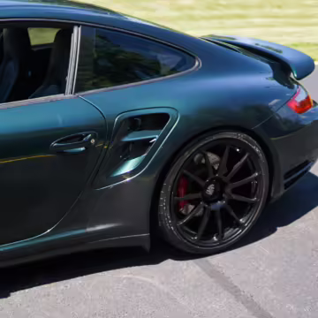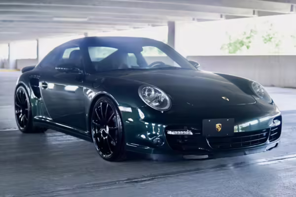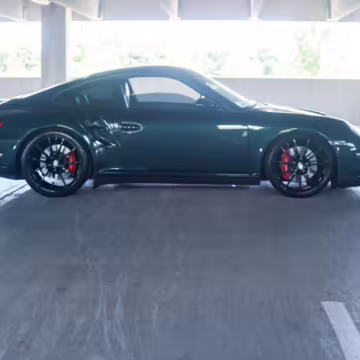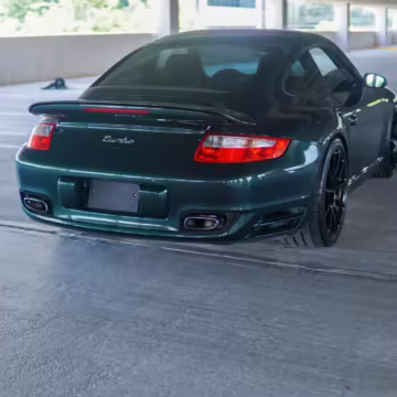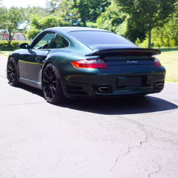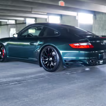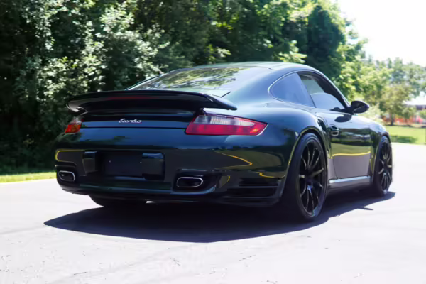 2007 Porsche 911 Turbo Coupe, finished in Forest Green Metallic with a Stone Grey leather interior.