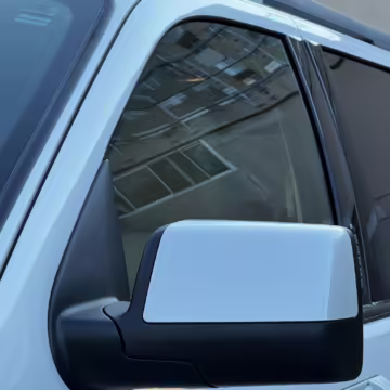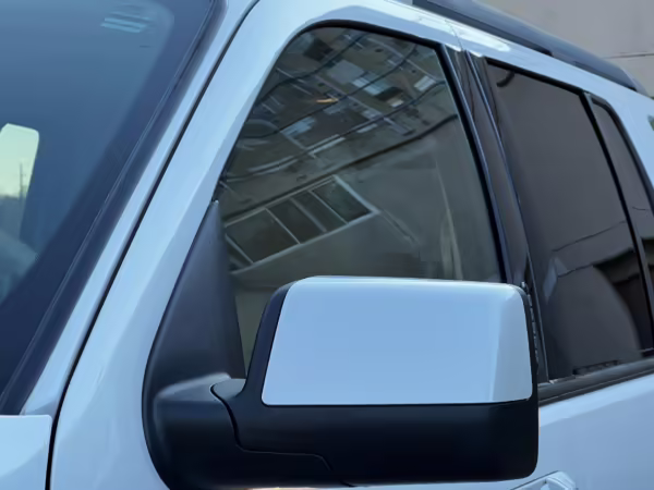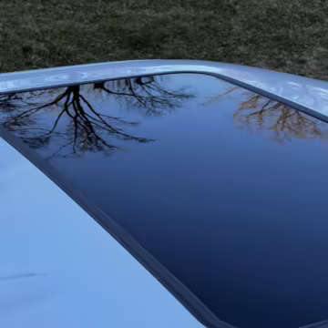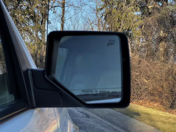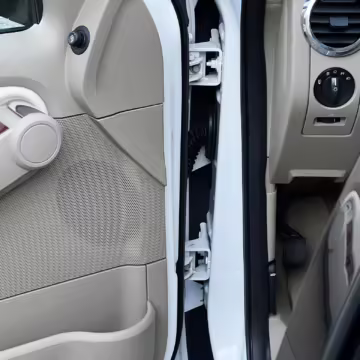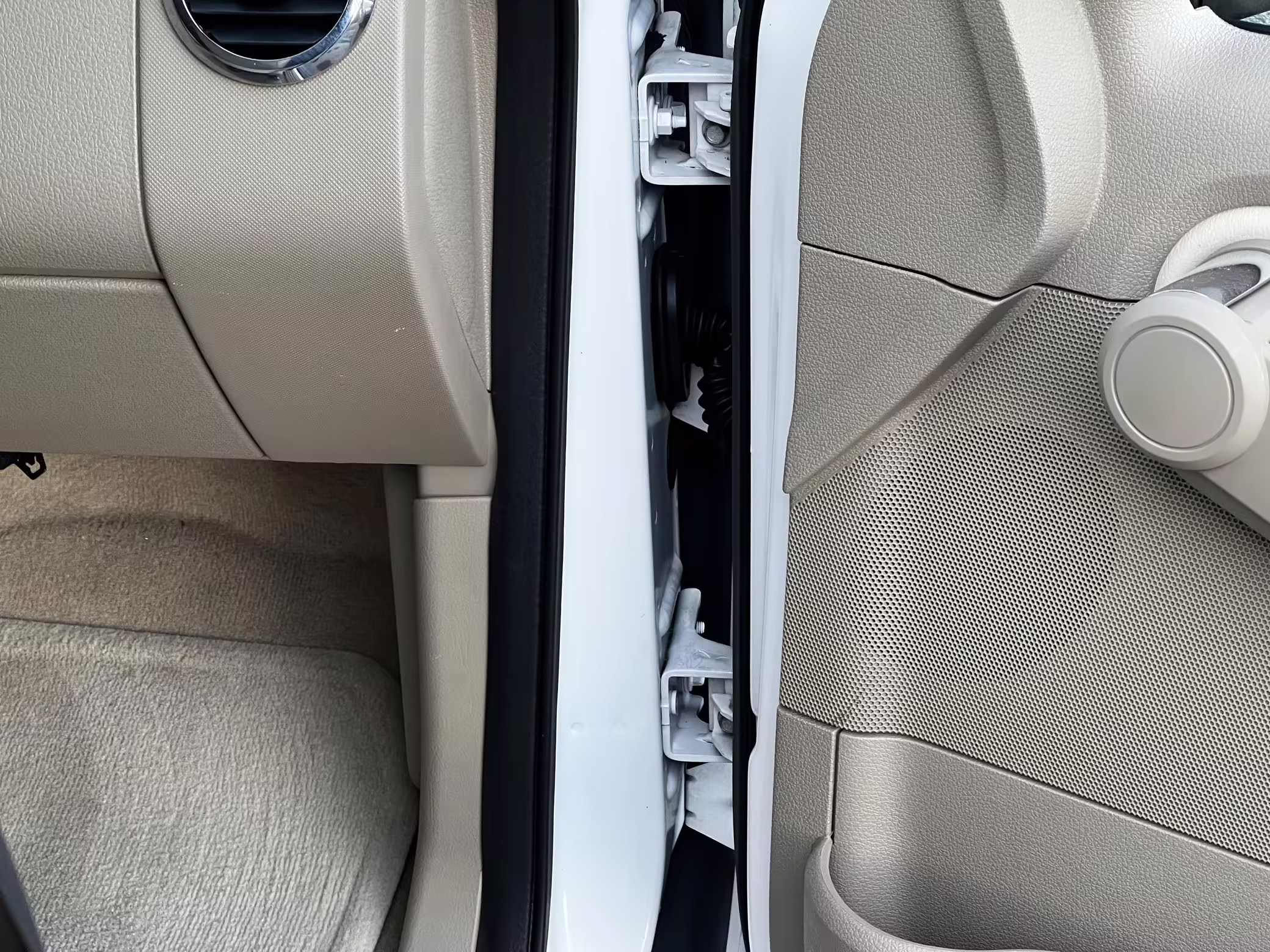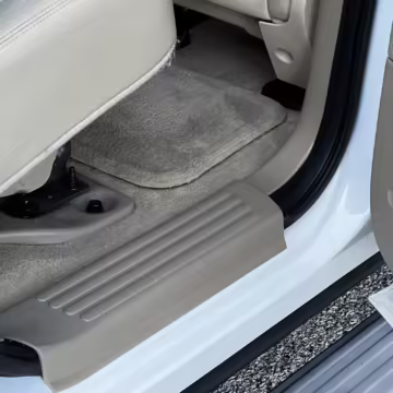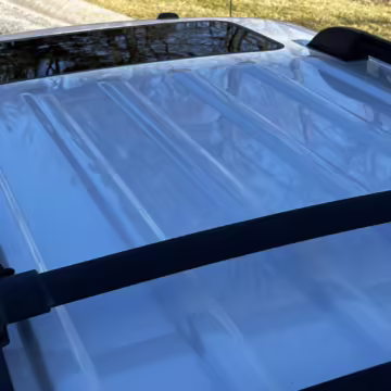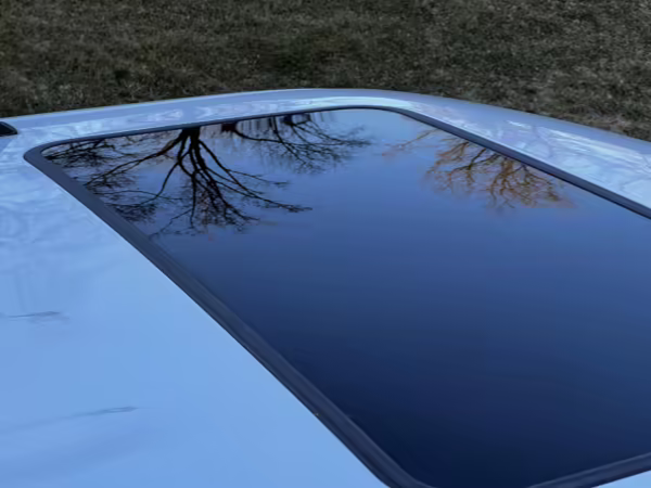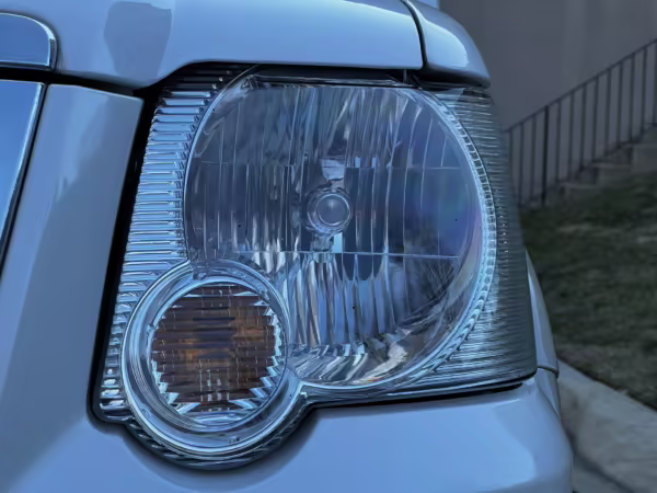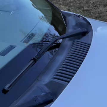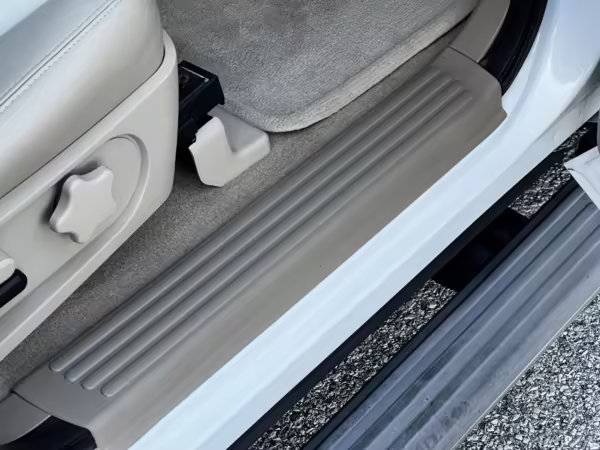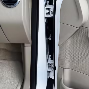 Exterior black plastic trim is weathered