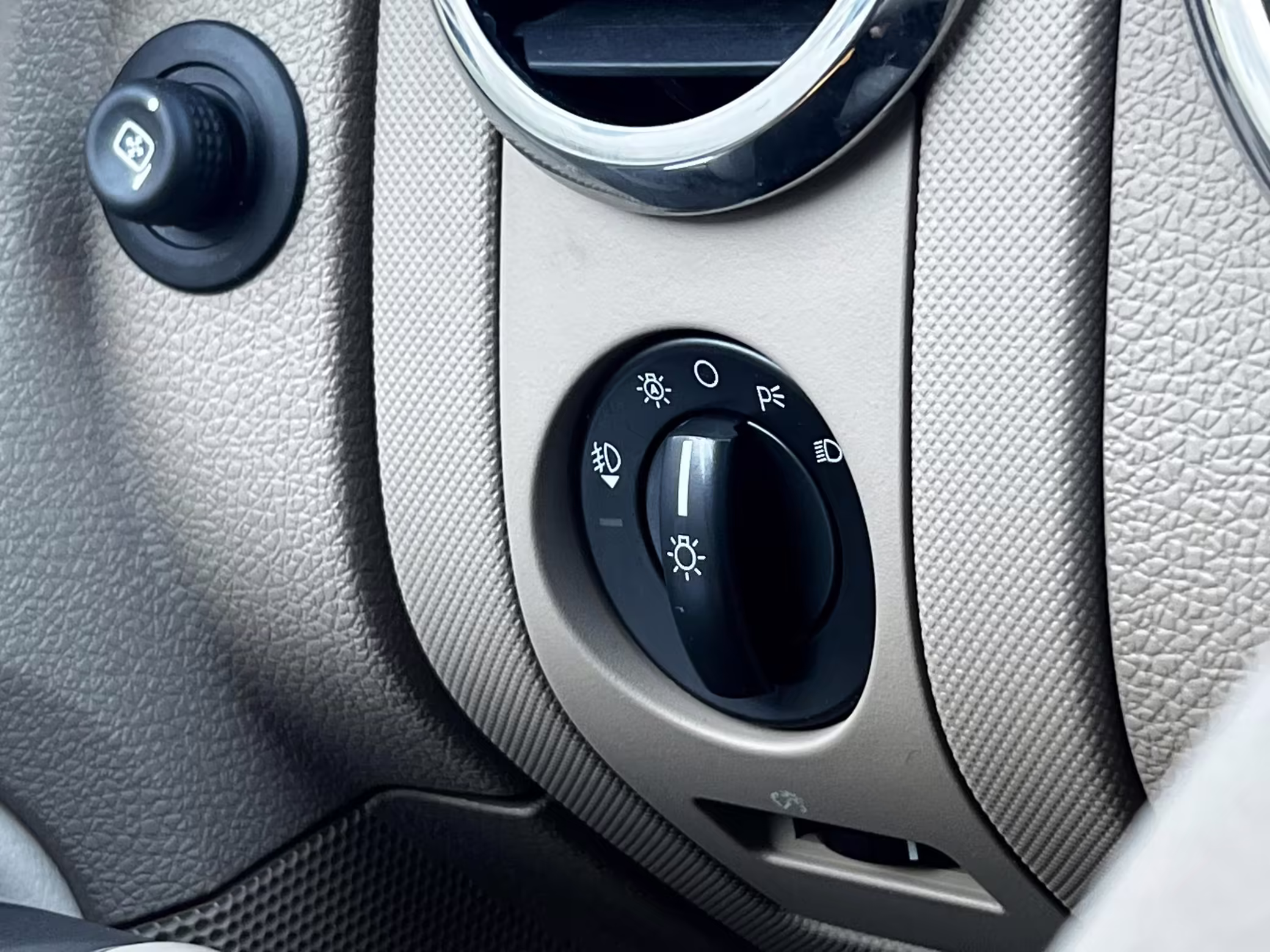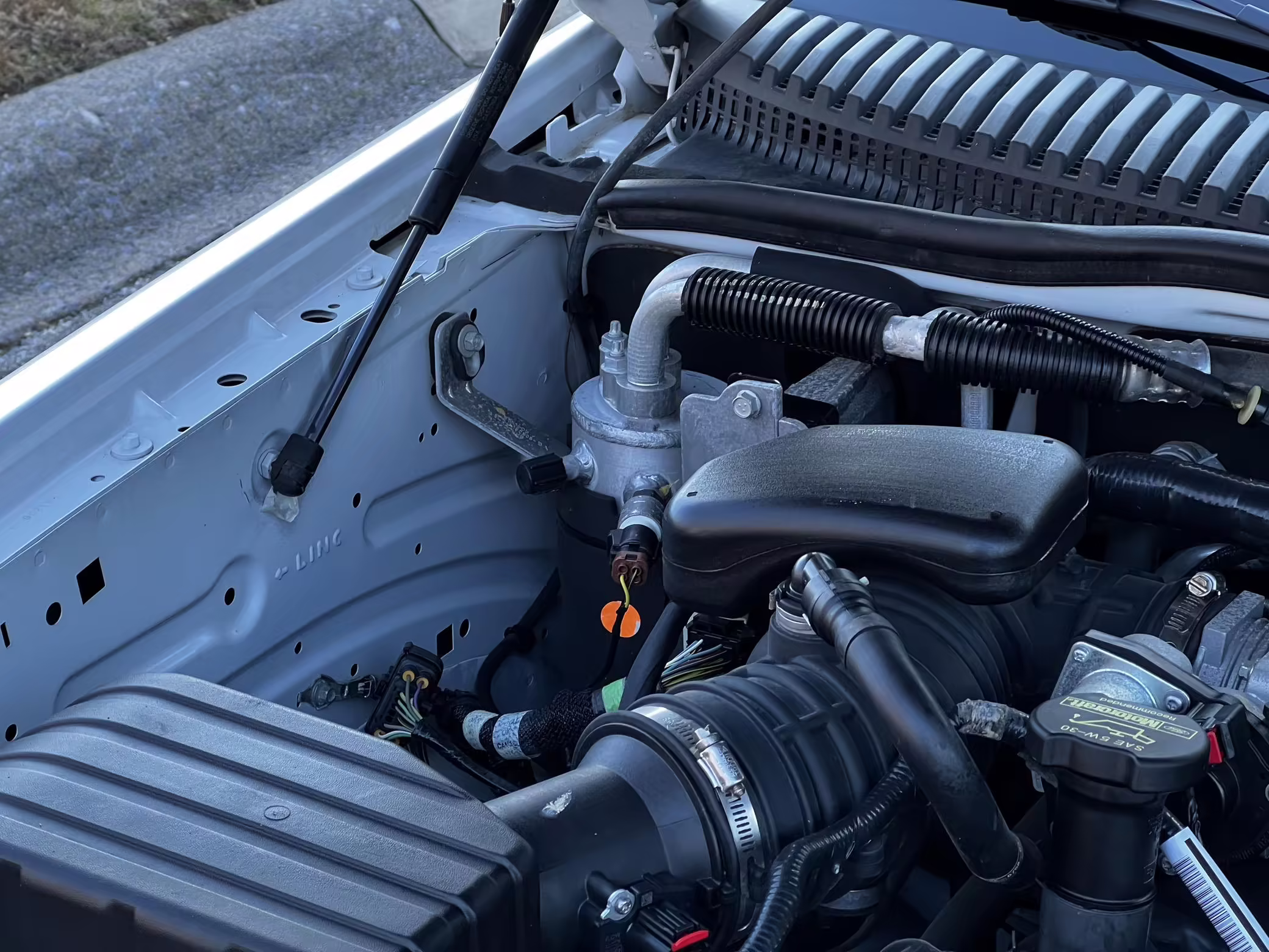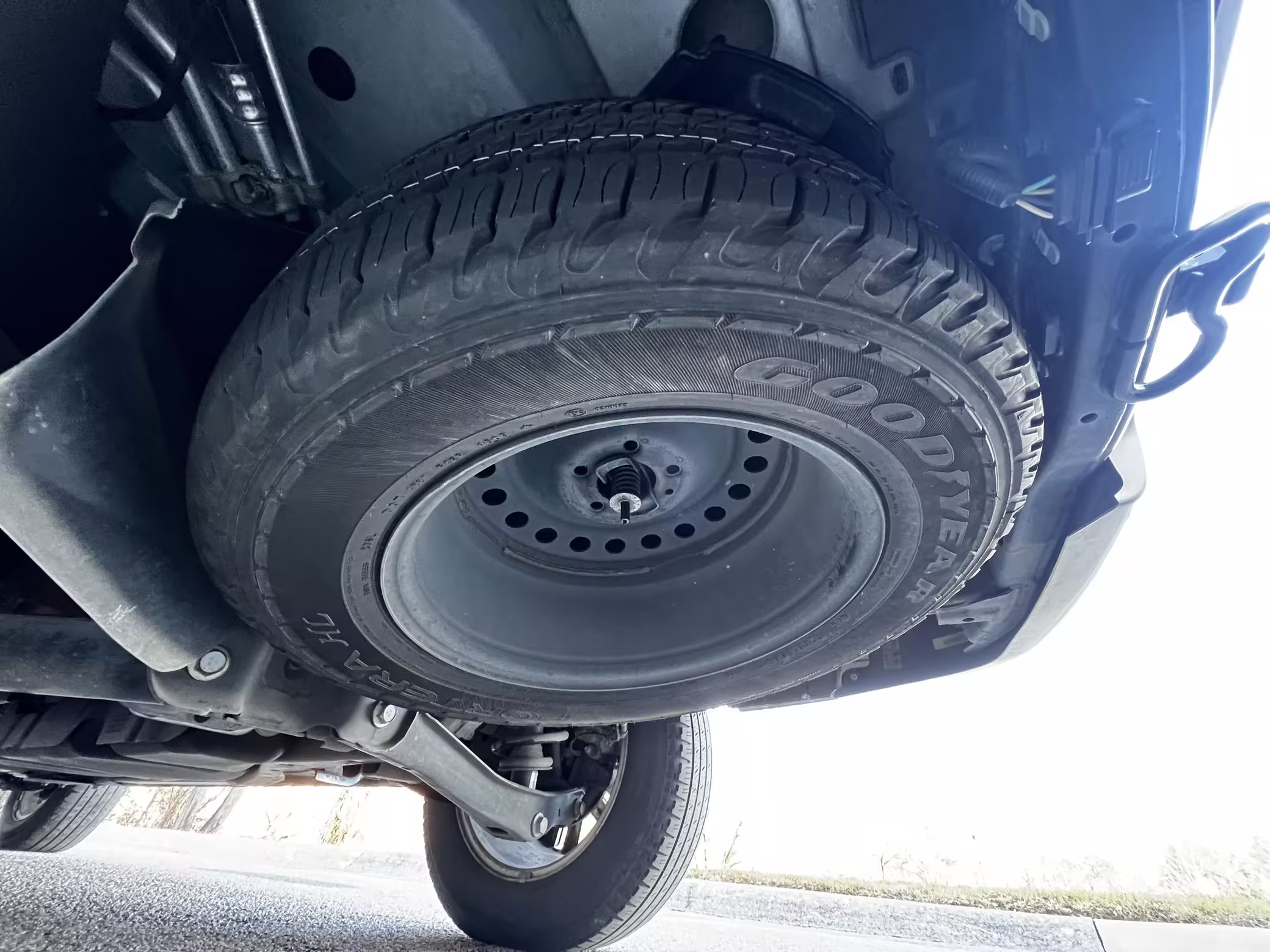 Exterior black plastic trim is weathered