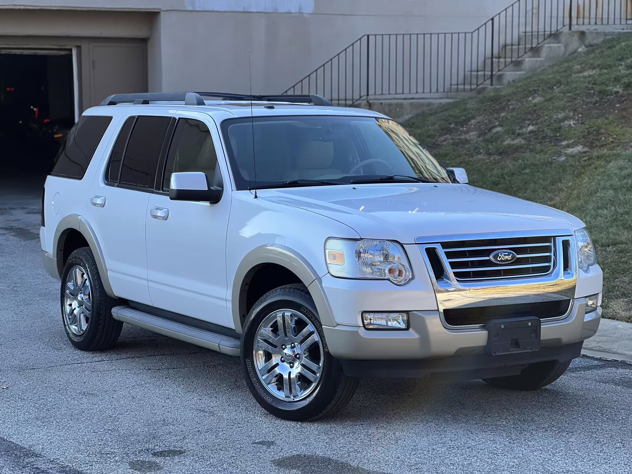2010 Ford Explorer Eddie Bauer, finished in White Platinum Metallic Tri-Coat and Pueblo Gold with a Camel and Sand interior.
