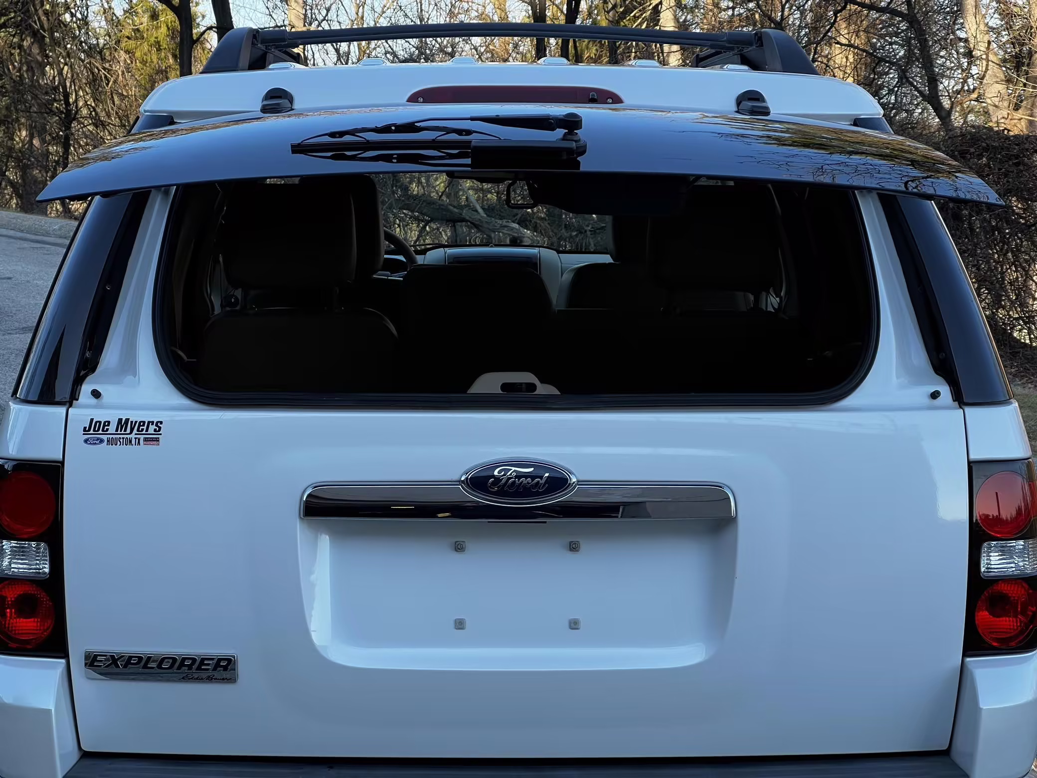 According to the window sticker provided in the gallery, this Explorer carried an MSRP of $37,430 when new. Factory equipment includes the Eddie Bauer Convenience Package, 18-inch chrome-clad aluminum wheels, a liftgate with a flip-open rear window, power-adjustable and heated front seats, split-folding second and third-row seats, auxiliary rear climate control, Ford SYNC, and cruise control. The selling dealer reports no modifications.