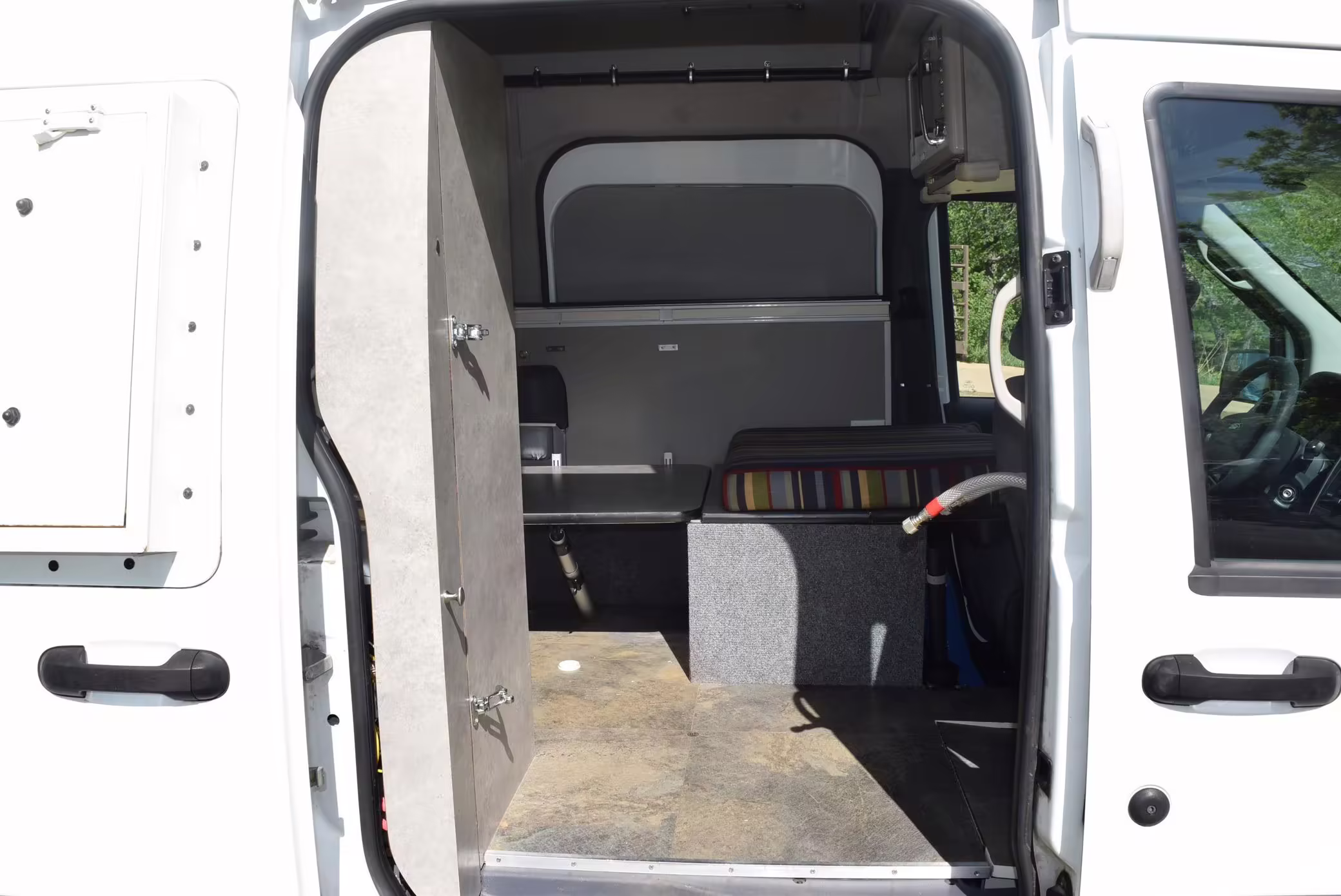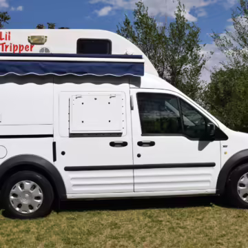 Most everyone knows about the full-sized Transit camper conversion vans, but the smaller Transit Connect is a great little vehicle that occasionally gets the van life treatment, too – and this is one of those. Along with a high-roof conversion, this camper manages to pack a 2-person convertible dinette, a sink, refrigerator, toilet, and shower inside! Not only that, there’s a propane camp stove tucked into the side of the body that allows for outdoor cooking under a roll-out awning.