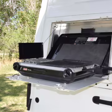 Externally-mounted propane camp stove