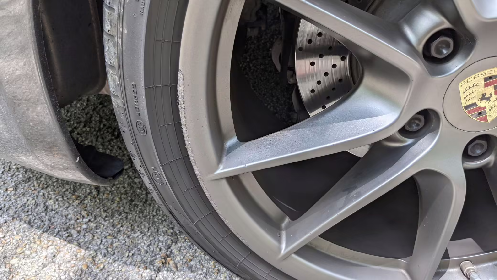 Curb rash on the right-rear wheel