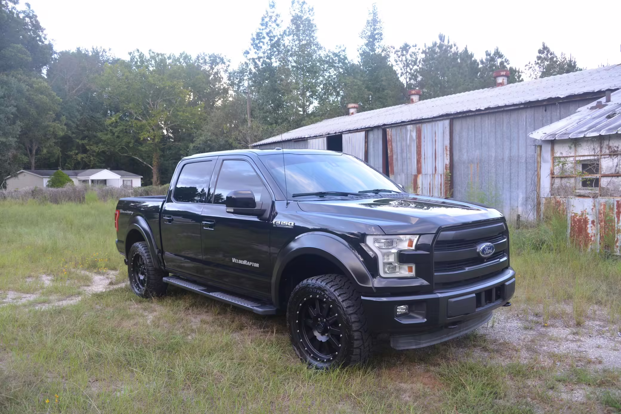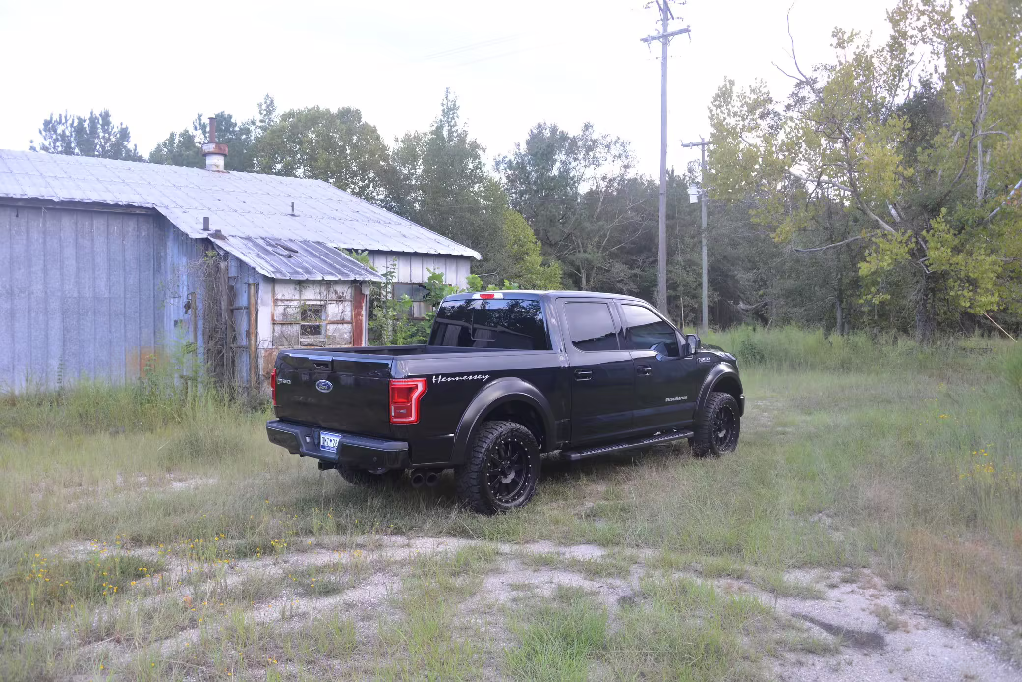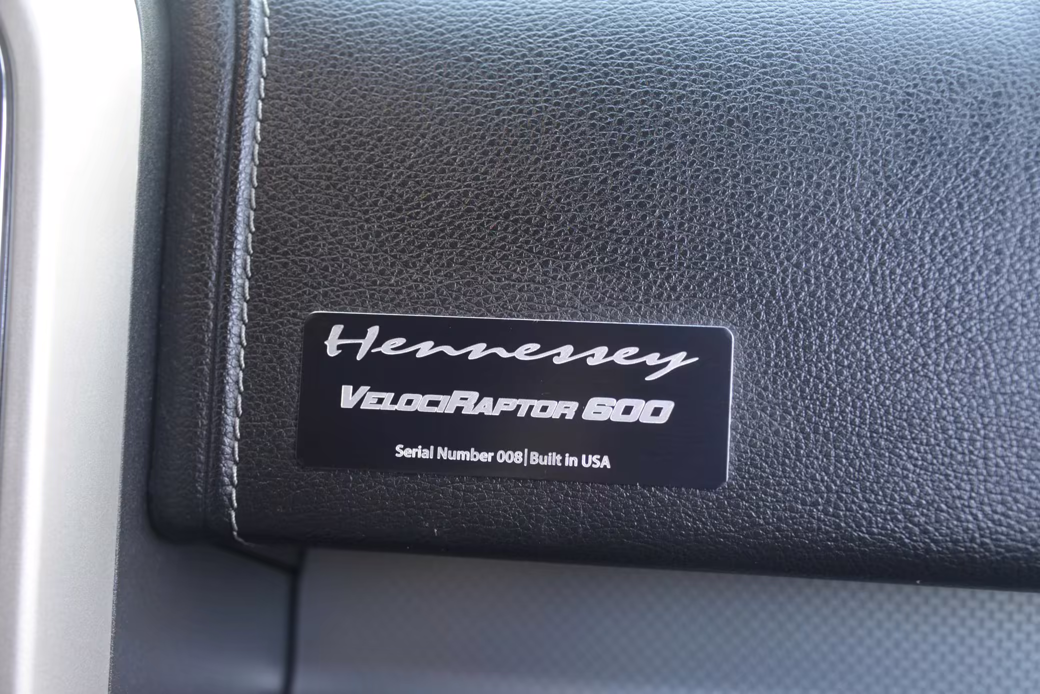 This truck began life as a Ford F-150 Lariat SuperCrew but then received the Hennessey VelociRaptor 600 performance upgrade. This includes a supercharger, a high-flow intake, stainless steel exhaust, upgraded fuel injectors, and a tune. This truck is #008 of 500 for the 2015 model year, which did not have a Raptor model from Ford.
