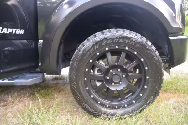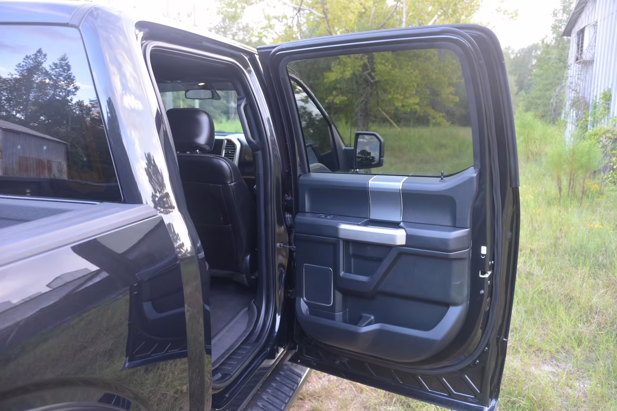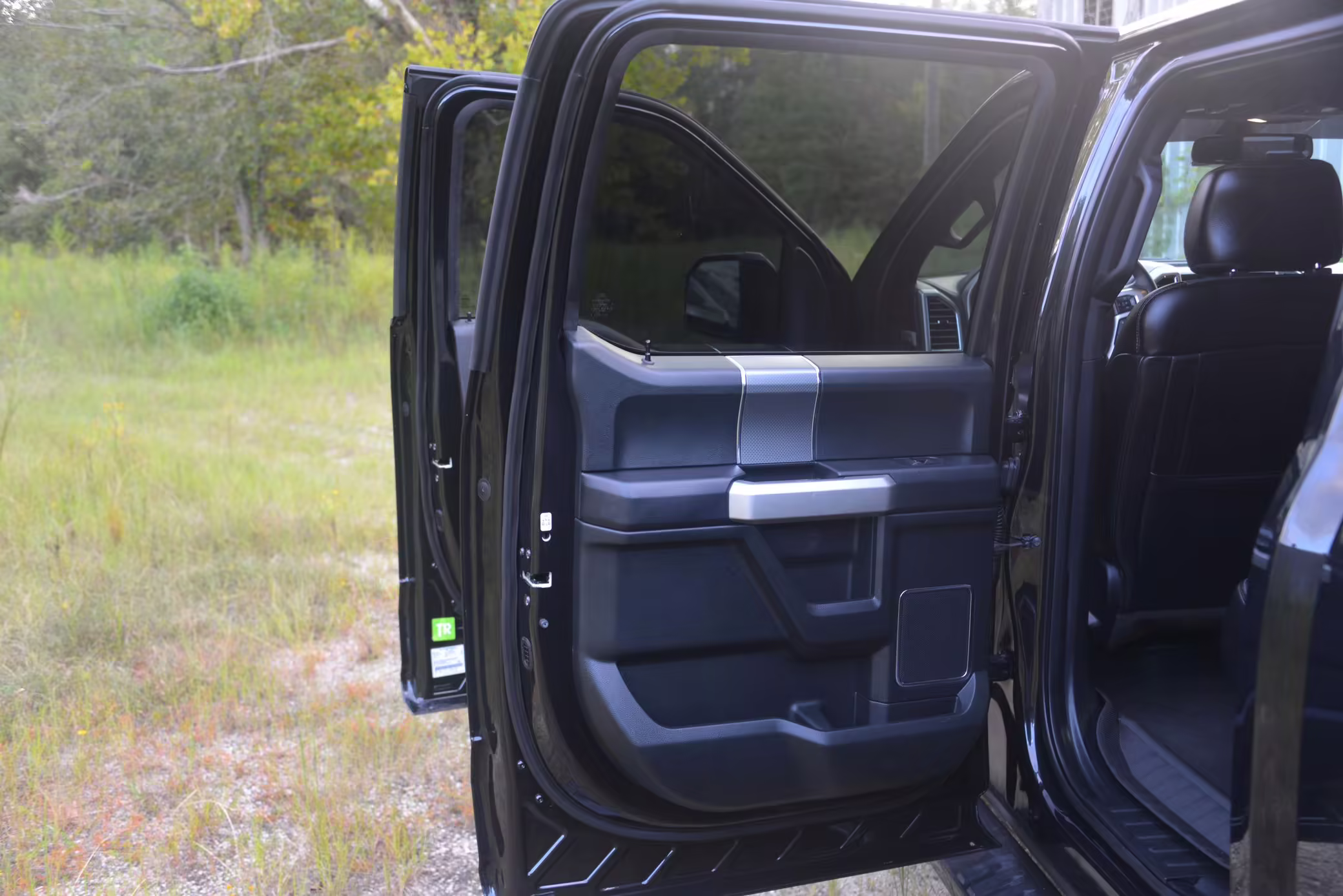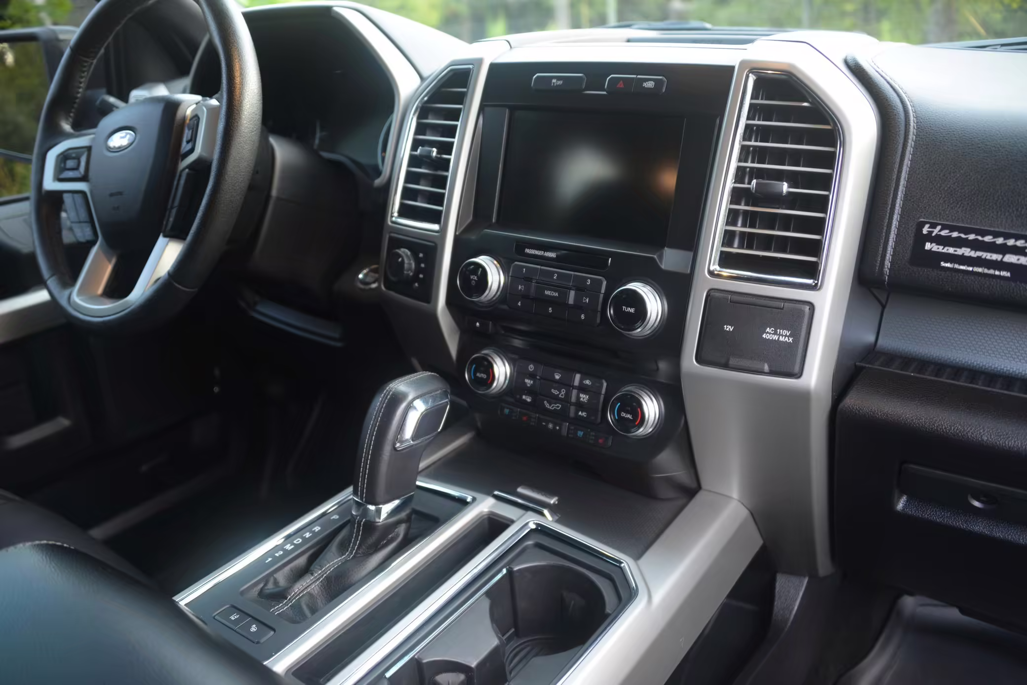This truck began life as a Ford F-150 Lariat SuperCrew but then received the Hennessey VelociRaptor 600 performance upgrade. This includes a supercharger, a high-flow intake, stainless steel exhaust, upgraded fuel injectors, and a tune. This truck is #008 of 500 for the 2015 model year, which did not have a Raptor model from Ford.