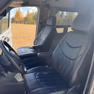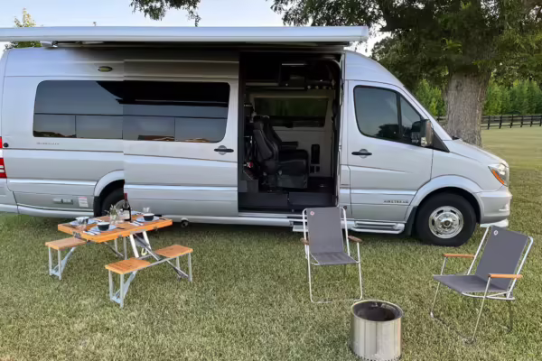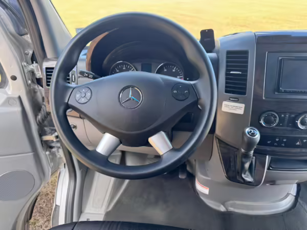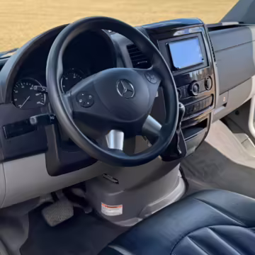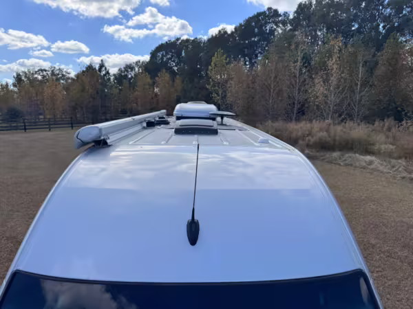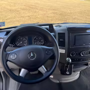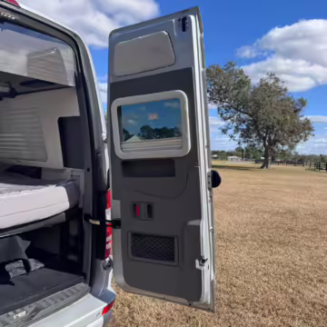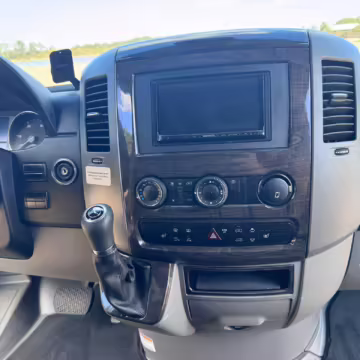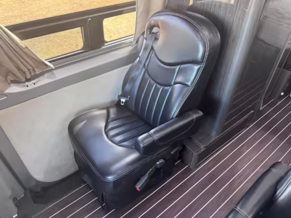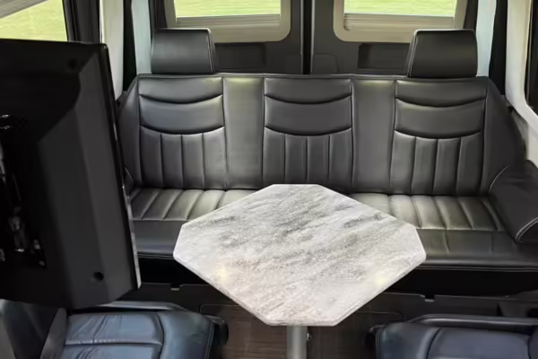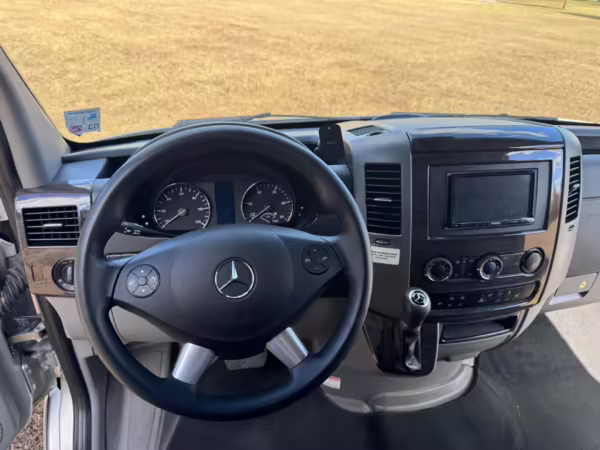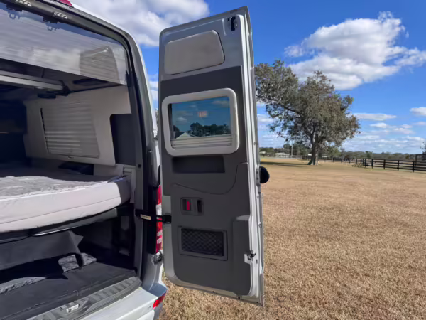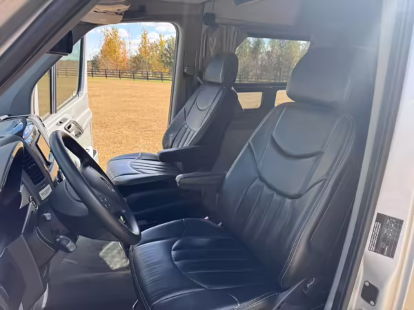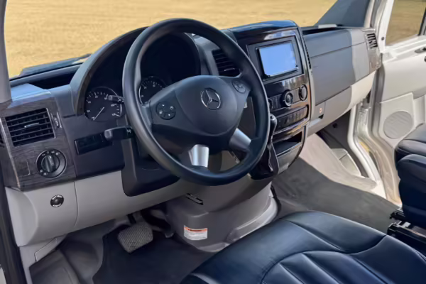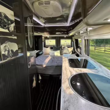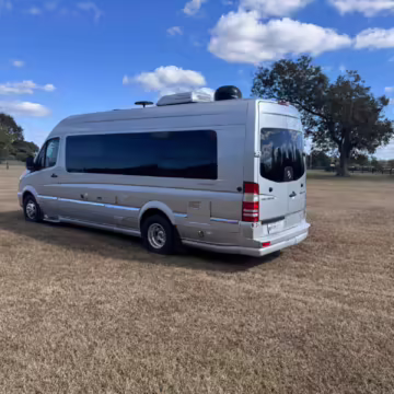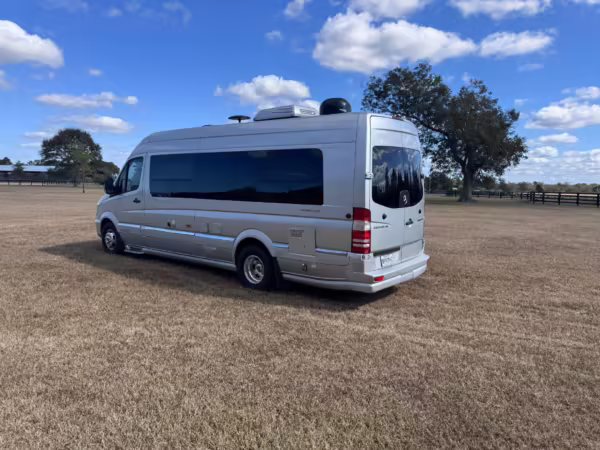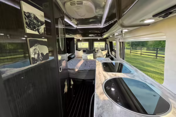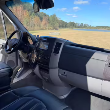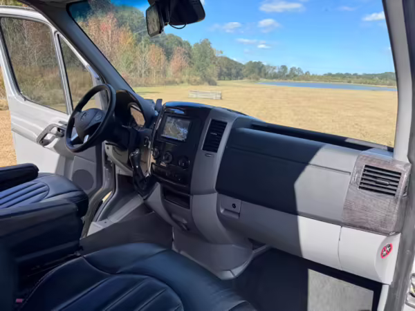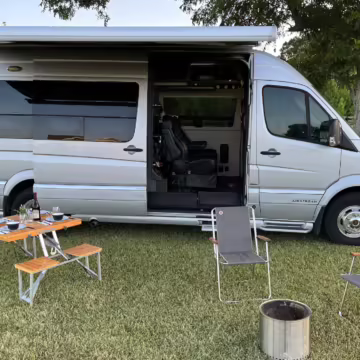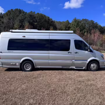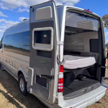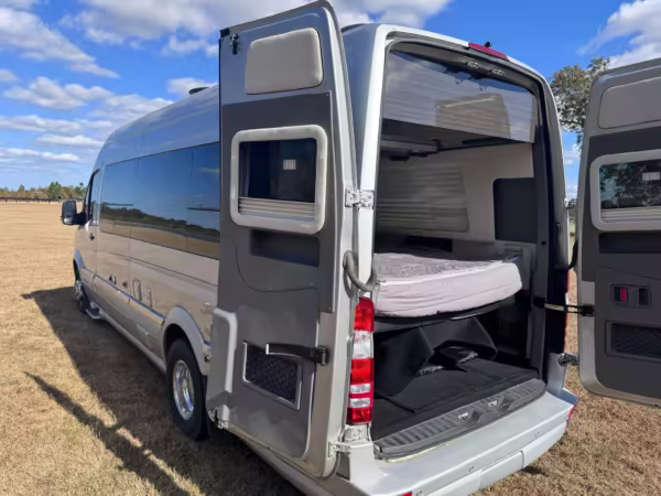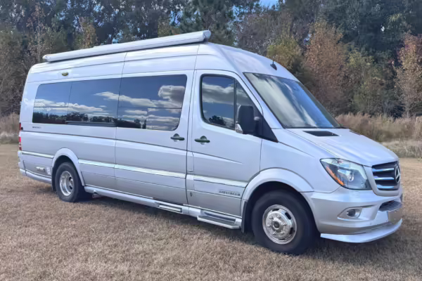 This van is based on the sturdy Sprinter 3500 chassis, and it features everything you need for a comfortable road trip: it seats nine and sleeps three, and it boasts a kitchen, a bathroom (with a shower), and even two televisions!