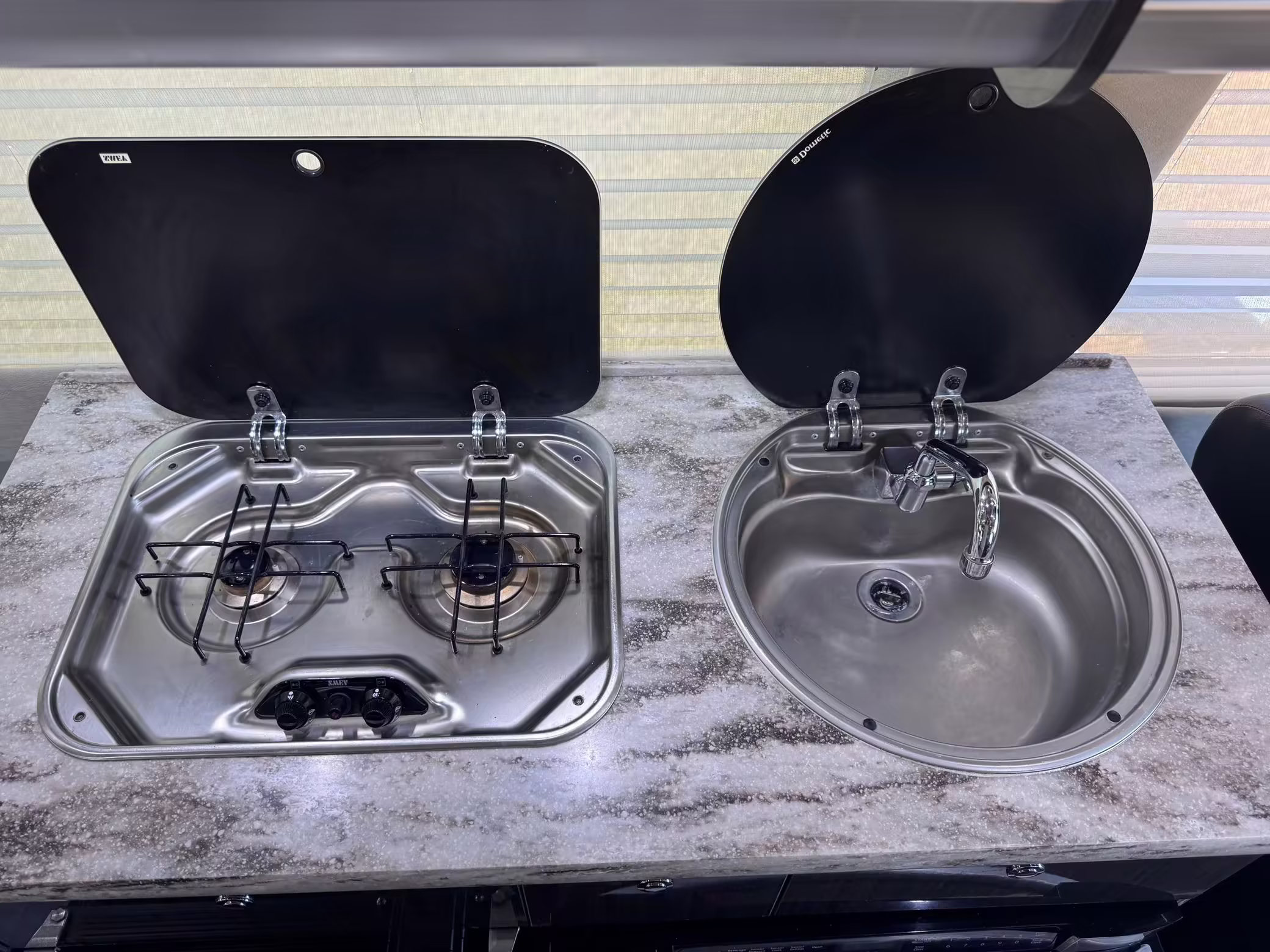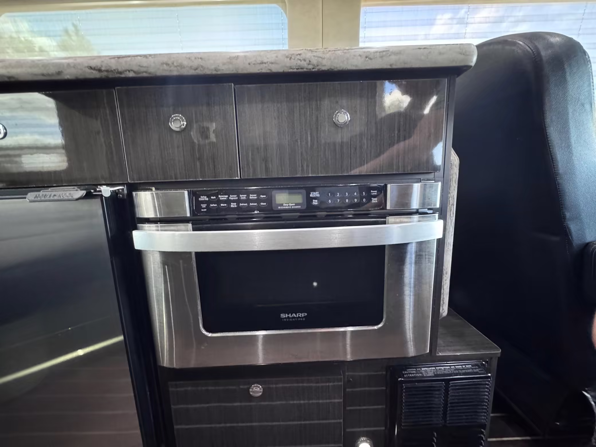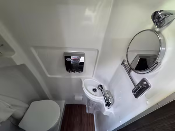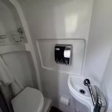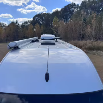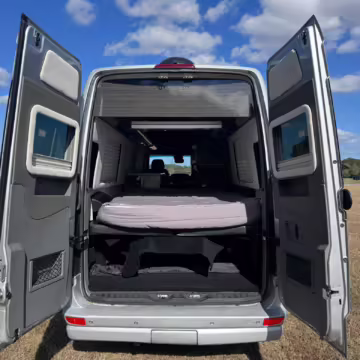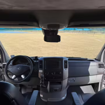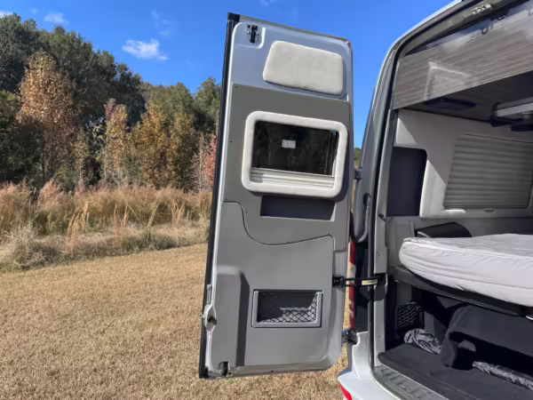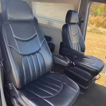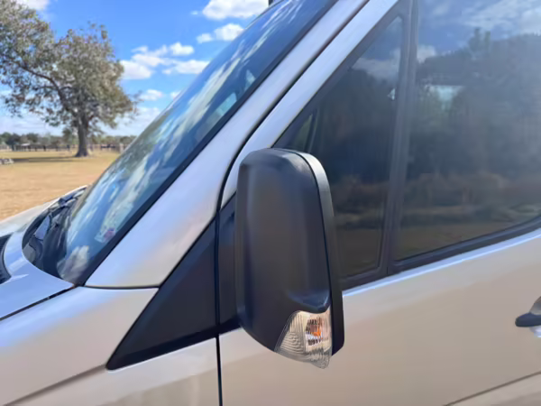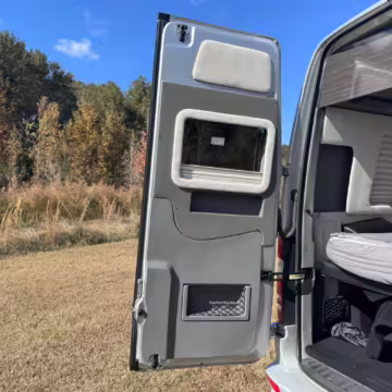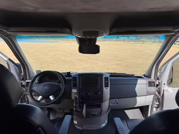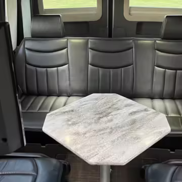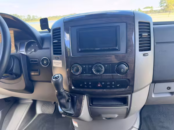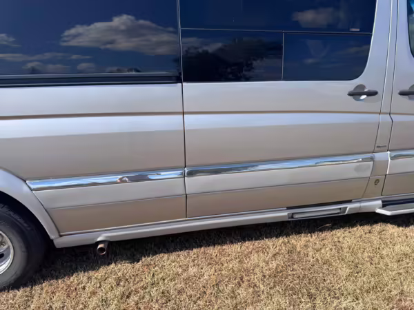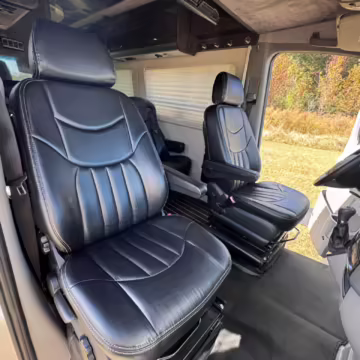 This van is based on the sturdy Sprinter 3500 chassis, and it features everything you need for a comfortable road trip: it seats nine and sleeps three, and it boasts a kitchen, a bathroom (with a shower), and even two televisions!
