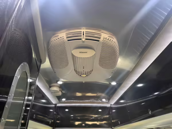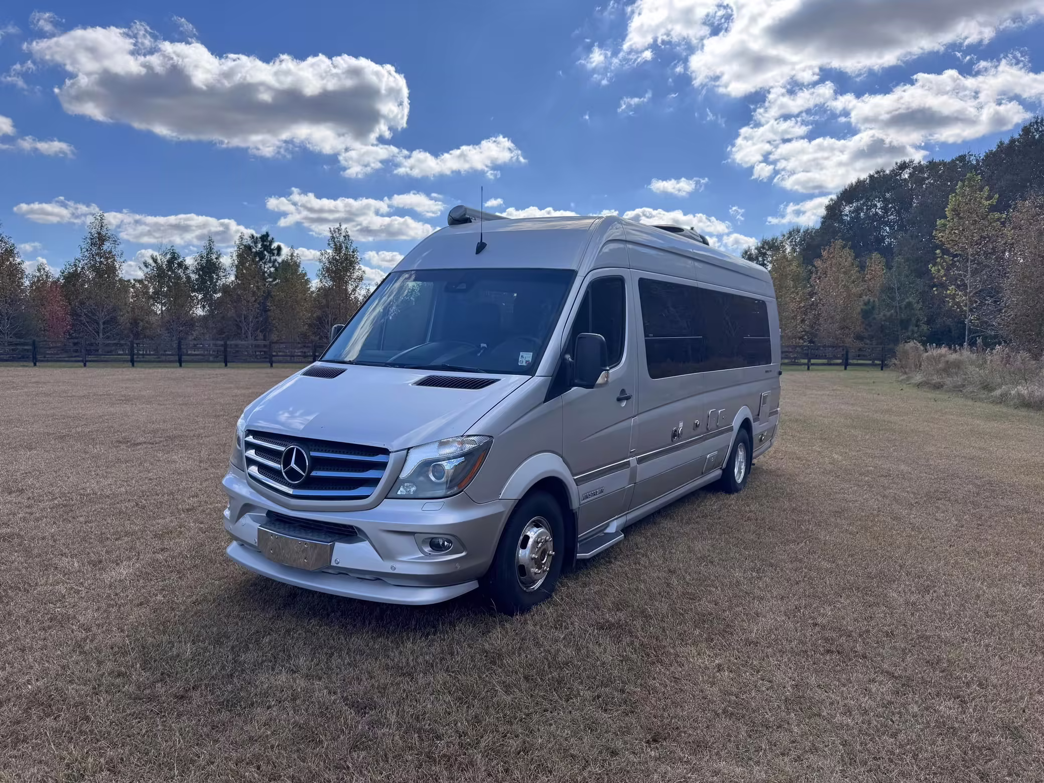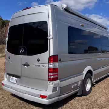2015 Mercedes-Benz Sprinter 3500 Airstream Interstate, finished in Bright Silver Metallic with a black interior.