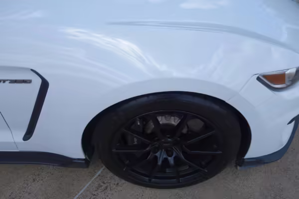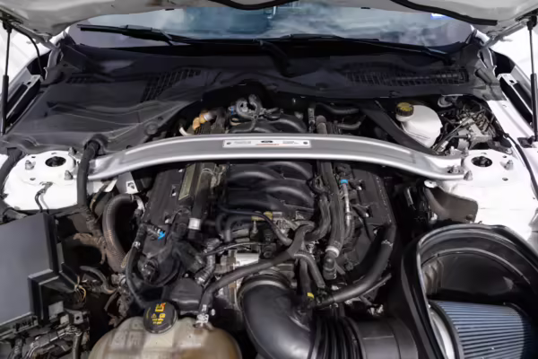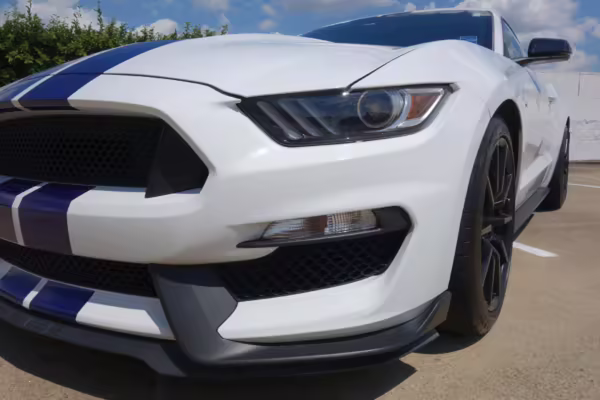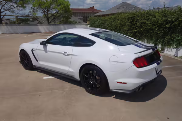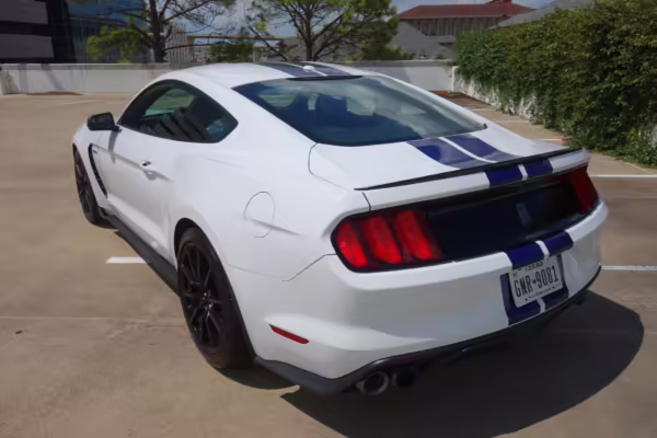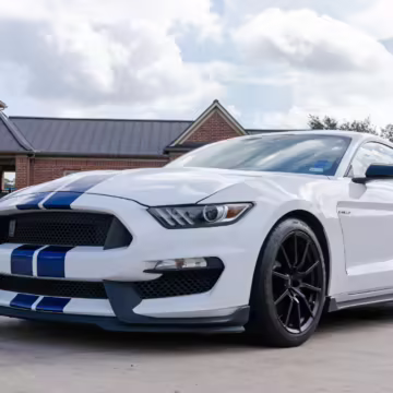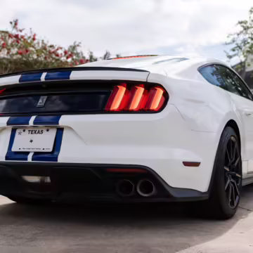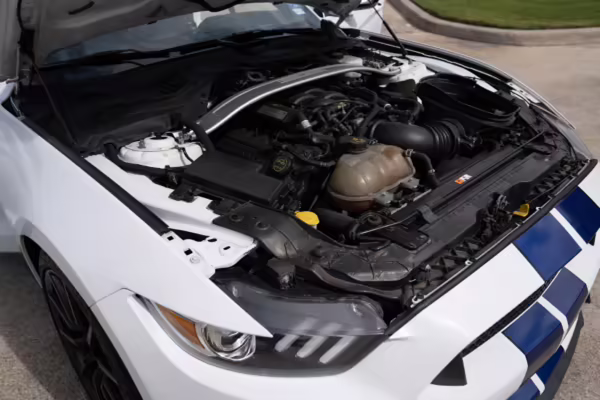 The track-focused Shelby GT350 variant of the “S550” Ford Mustang is notable for its special V8 engine which employs a flat-plane crank and a unique crankpin configuration and firing order. It also has upgraded aerodynamics, a revised suspension, and various lightweight components compared to the Mustang GT resulting in a highly competent muscle car for the track.