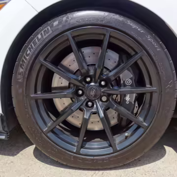 2-piece, cross-drilled brake rotors with Brembo calipers