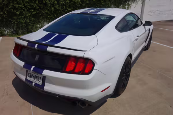 This Shelby GT350 is powered by a “Voodoo” 5.2-liter V8 engine, which produces 526 horsepower and 429 lb-ft of torque and sends power to the rear wheels via a 6-speed manual transmission, the only transmission available on the GT350.