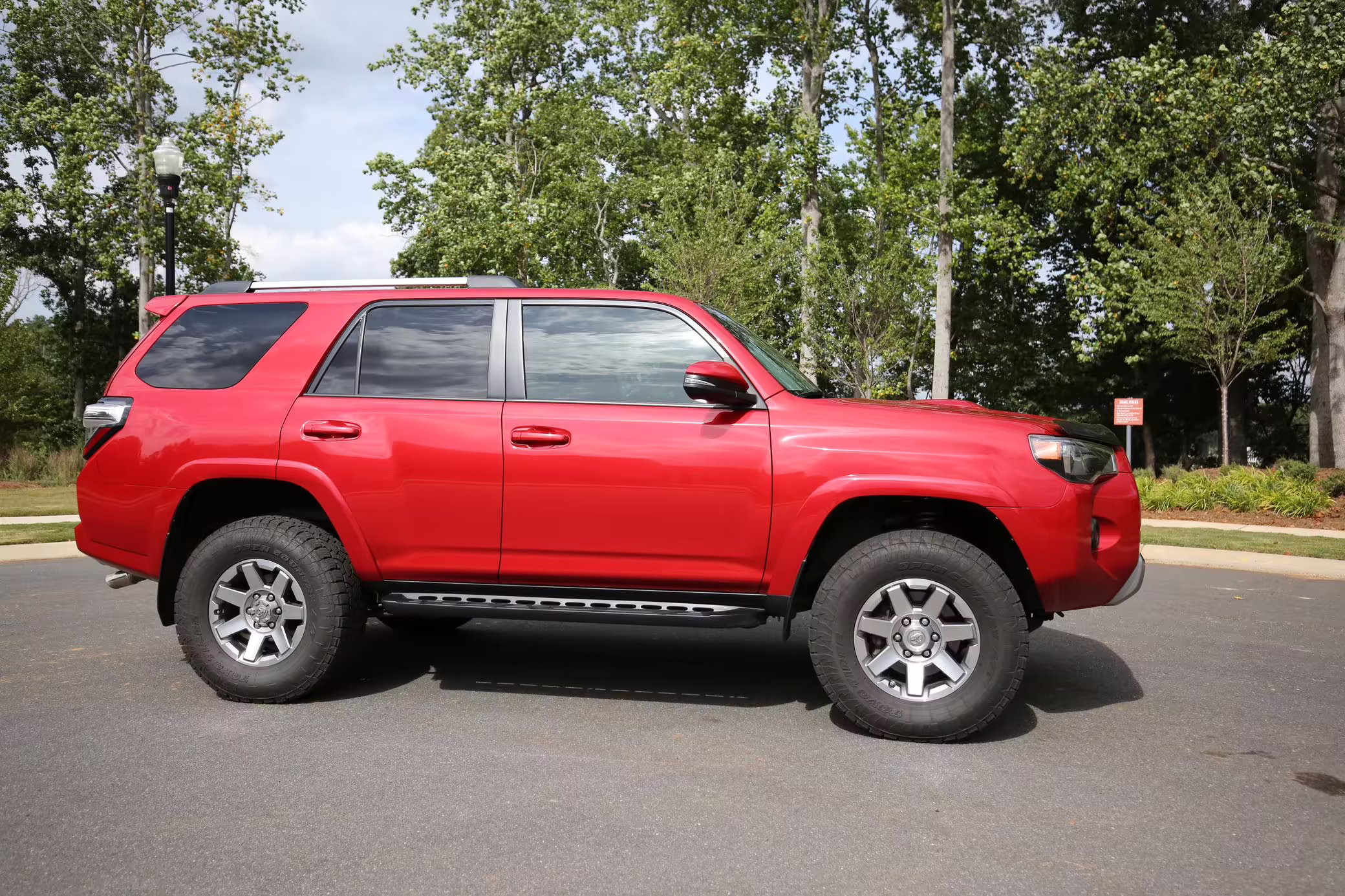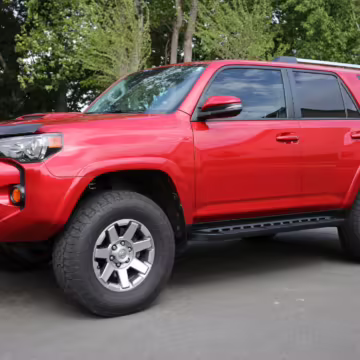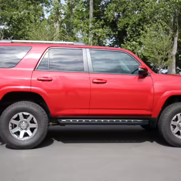 This one touts a gorgeous color called Barcelona Red – and it boasts Toyota’s great Kinetic Dynamic Suspension System, which makes it even more capable on the trail.