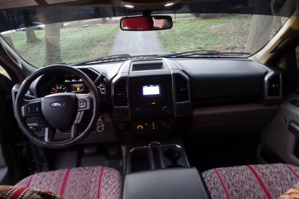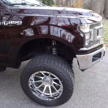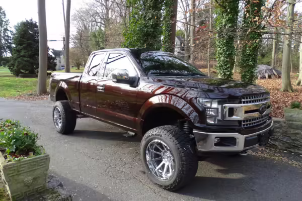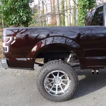 Now THIS is a head-turning F-150! It’s a well-equipped XLT model that’s finished in gorgeous and unusual Magma Red, and it’s fitted with the Trailer Tow Package and an electronic locking rear axle. This F-150 has also been extensively modified with some serious changes over a standard truck, touting a 6-inch BDS lift, Fox Racing coilovers, and a set of 20-inch V-Rock VR13 wheels with 35-inch Falken Wildpeak tires.