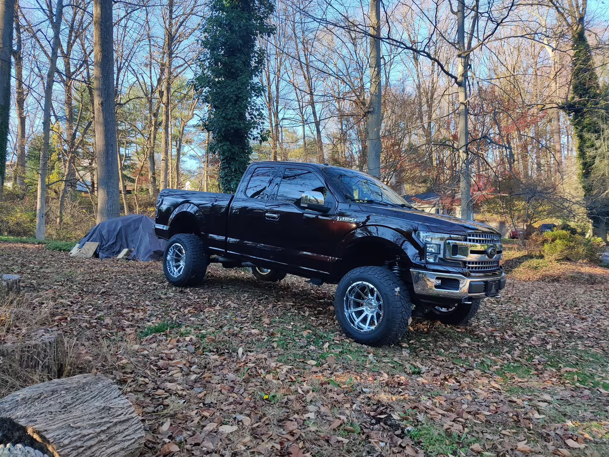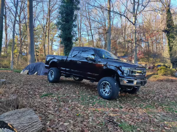 Modifications to this F-150 are extensive, and the full list is detailed below. Highlights include 20-inch V-Rock VR13 wheels with 35-inch Falken Wildpeak tires, a 6-inch BDS lift kit, Fox Racing coilover suspension, Yukon Gear 4.56 gears, a Brenspeed tune, a K&N intake, a Flowmaster exhaust system, a Gator tonneau cover, tinted windows, an Oracle Rock Light kit, and RuffTuff seat covers.