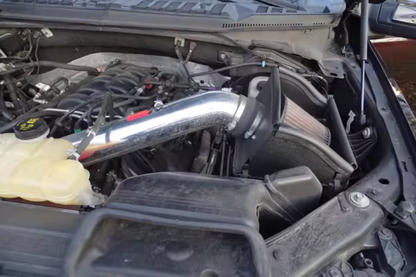 Factory suspension parts, headlights, intake with air filter, front air dam, spare tire, running boards, and “Ford” badges