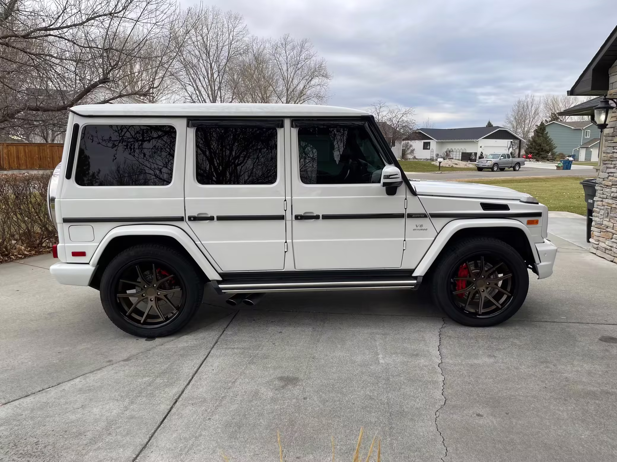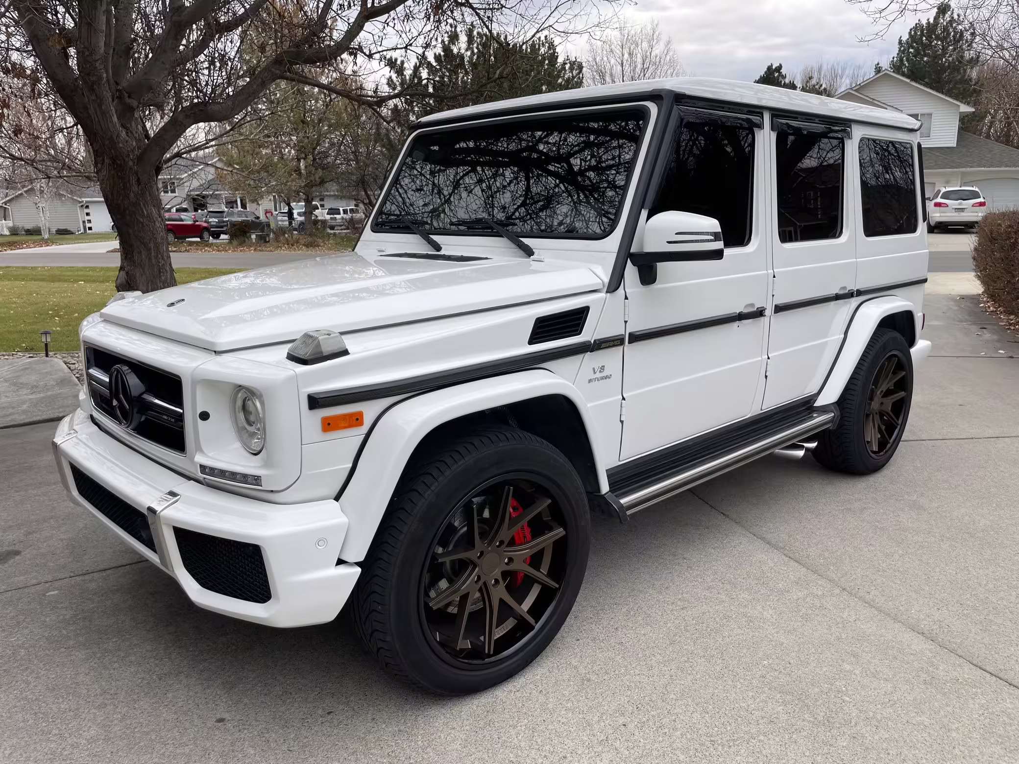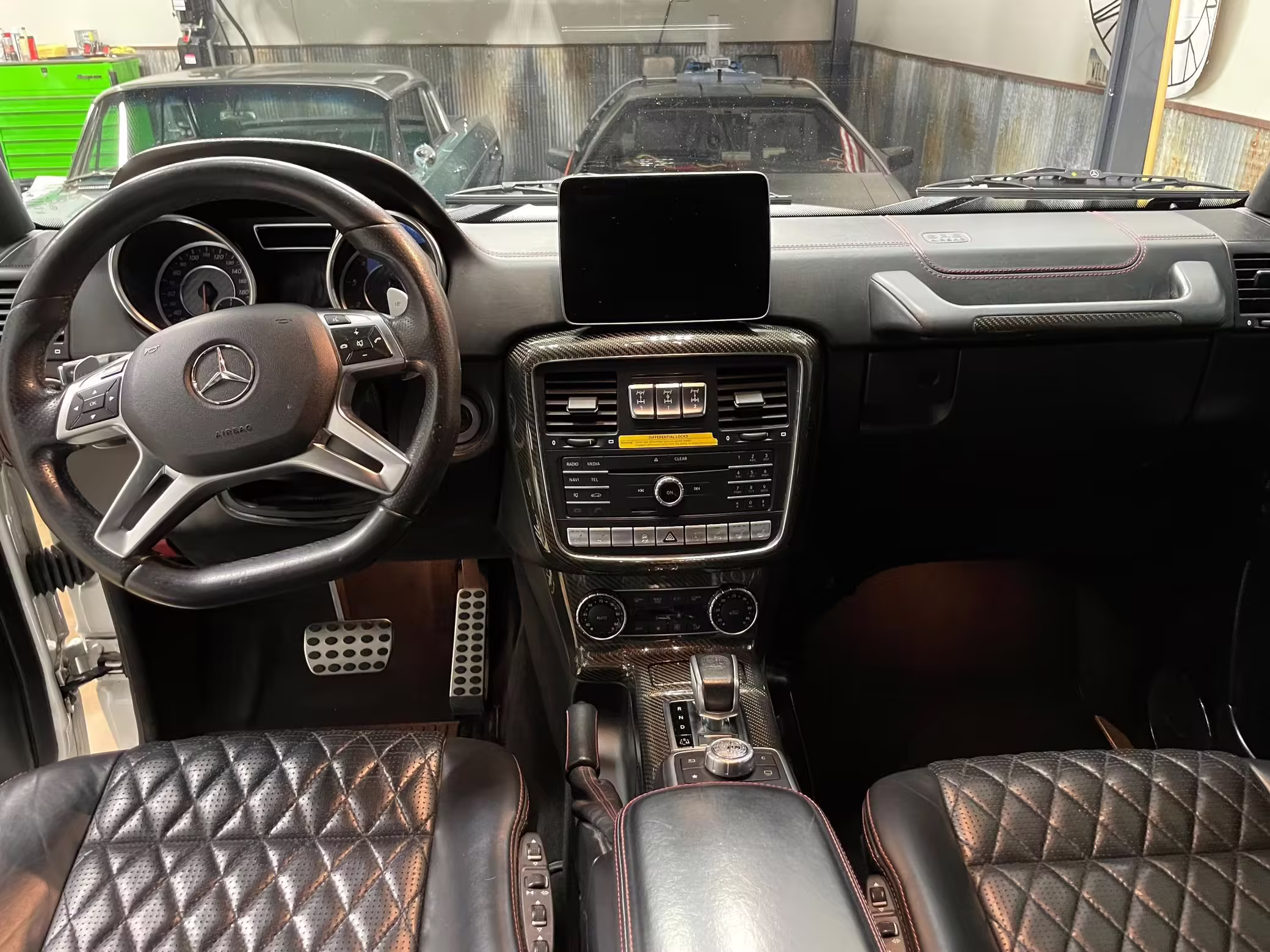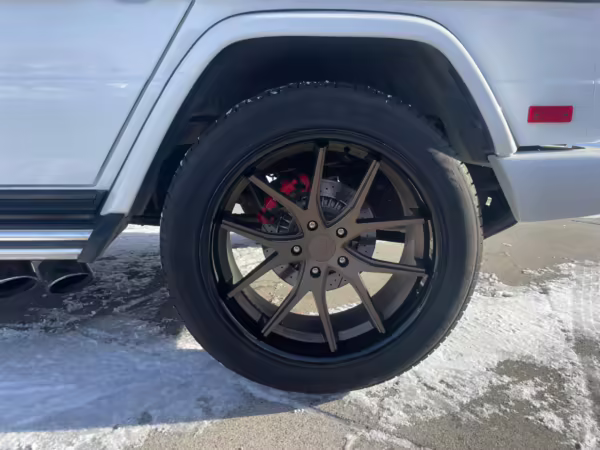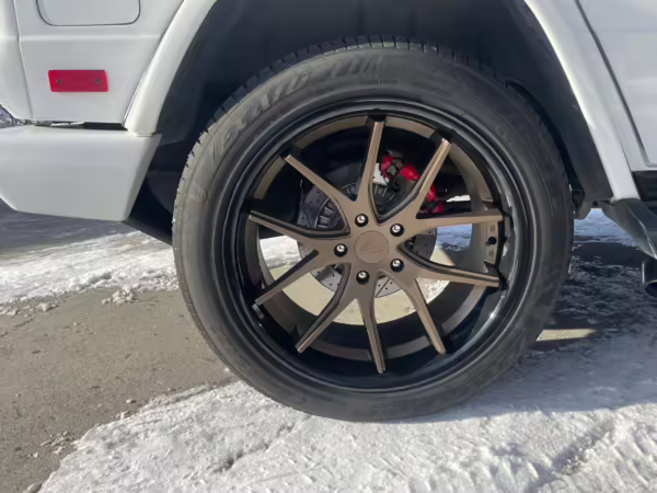 • According to the build sheet provided in the gallery, notable factory equipment includes the Designo Exclusive Leather Package, triple locking differentials, a power sunroof, heated and ventilated front seats, and a Harman/Kardon sound system. Notable modifications reported by the seller are limited to 22-inch Ferrada wheels.
