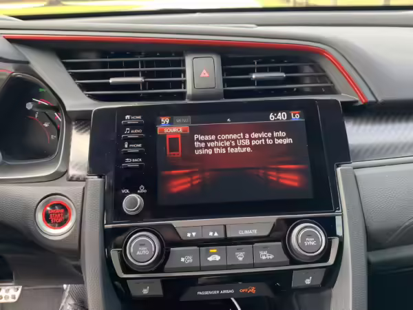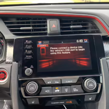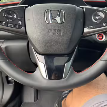 This Civic is equipped with fog lights, a rear spoiler, a sunroof, cloth upholstery, red stitching, heated front seats, a 10-speaker sound system, and a navigation system, among other features. The seller states the windows were tinted by the dealer he bought this car from.