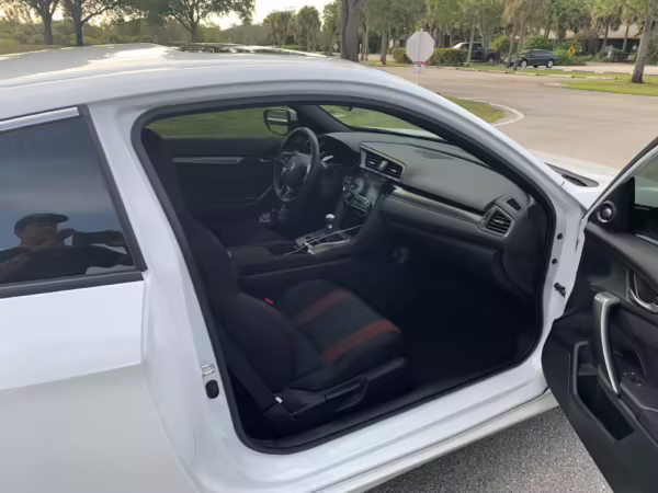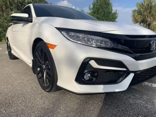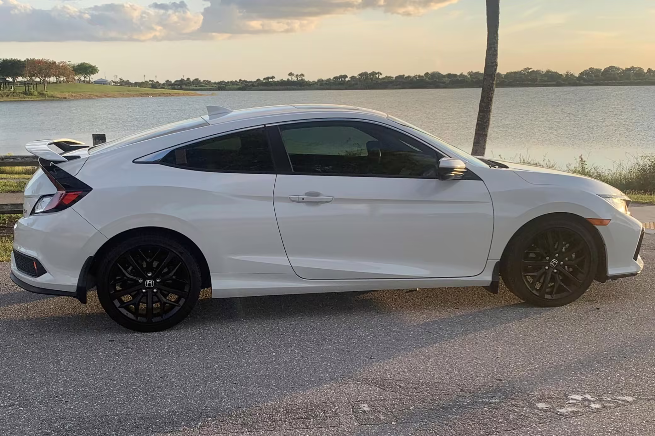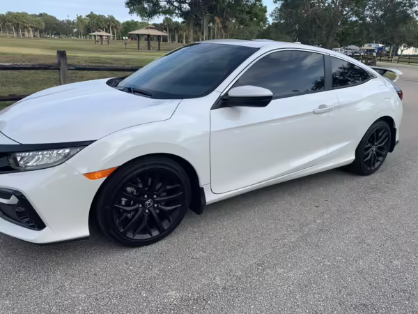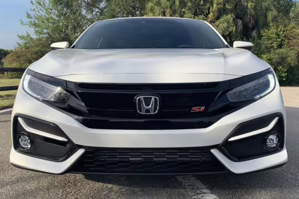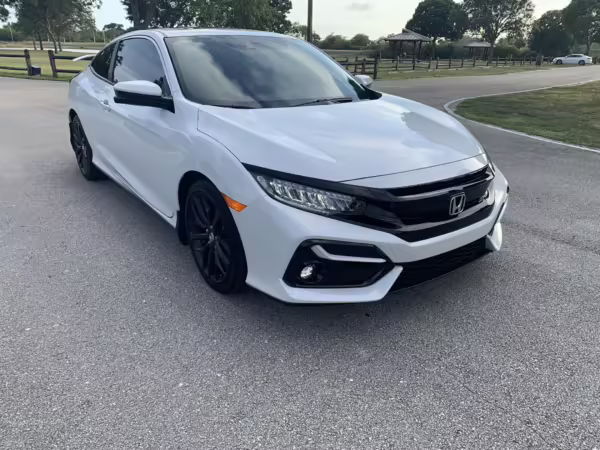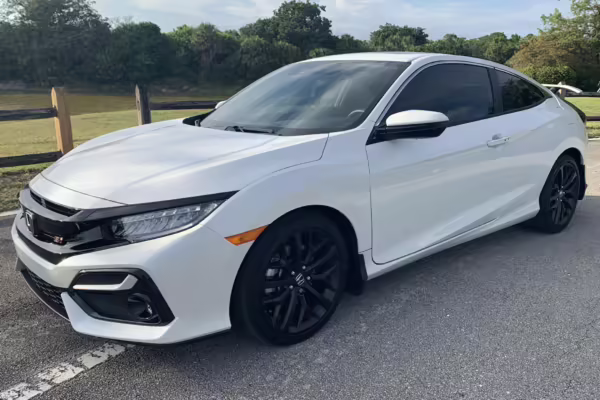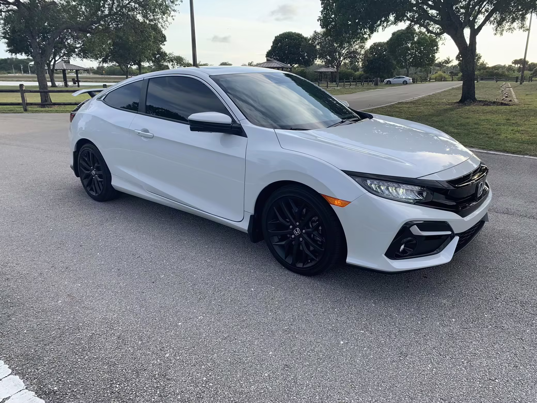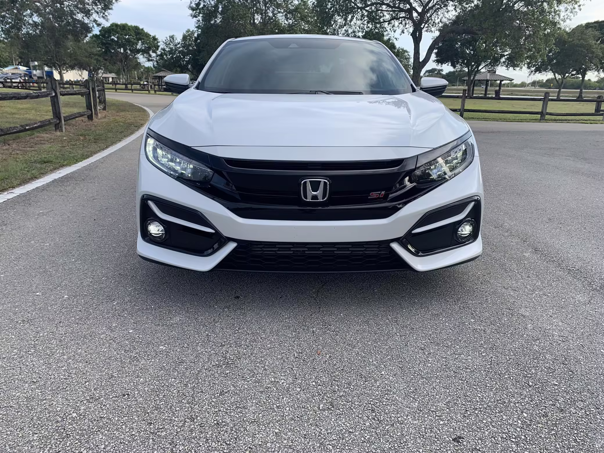 2020 Honda Civic Si Coupe, finished in Platinum Pearl White with a black interior.
