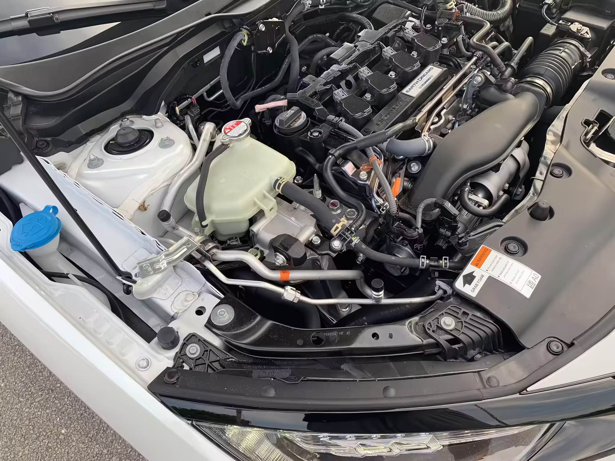 Power for this Civic Si comes from a 1.5-liter turbocharged 4-cylinder engine, which produces 205 horsepower and 192 lb-ft of torque. Part of the L-Series family of engines, it spins the front wheels via a 6-speed manual transmission.