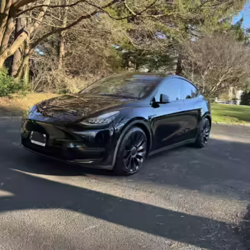 2020 Tesla Model Y Performance, finished in Solid Black with a black and white interior.
