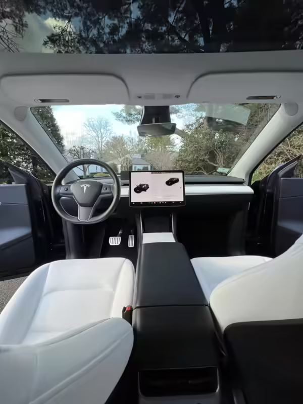 If you’re in the market for a Tesla Model Y, the sporty Performance variant is the one to get – it boasts the same spacious interior and great technology as the standard car, but it benefits from a more powerful drivetrain. This Model Y touts Tesla’s Full Self-Driving Capability, a Premium Interior, and a set of 21-inch Überturbine wheels. It’s also nearly unmodified, aside from tinted windows, a wind noise reduction kit, and white film on the center console.