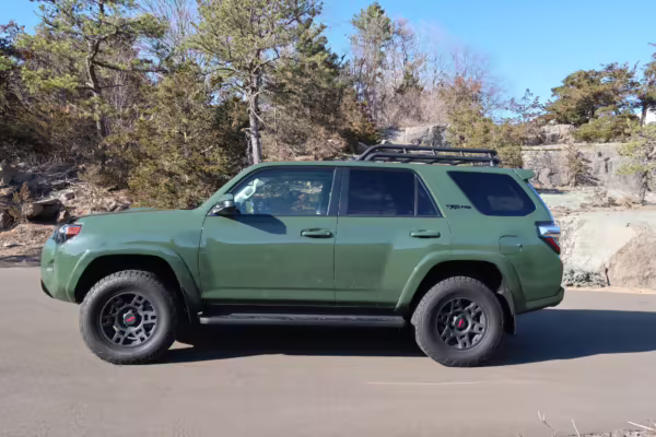 In fact, I consider this one of the best SUVs on sale – and, frankly, the North American version of the 70-Series Land Cruiser that everyone says they want, except this is better. I say that because it’s similarly capable – but it touts more equipment, and it’s still relatively simple to own, ensuring reliability. The TRD Pro is especially desirable, boasting some fantastic off-roading accessories and cosmetic upgrades compared to the standard model. This 4Runner is also finished in maaaaaybe the best TRD Pro color – wonderful Army Green, which helps this SUV stand out further.