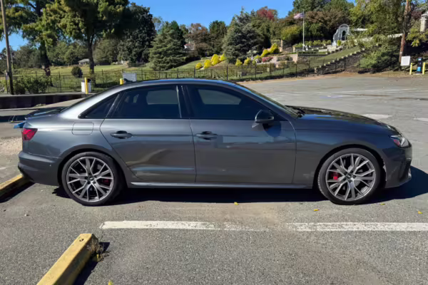 2021 Audi S4 Prestige, finished in Daytona Grey with a Magma Red interior.